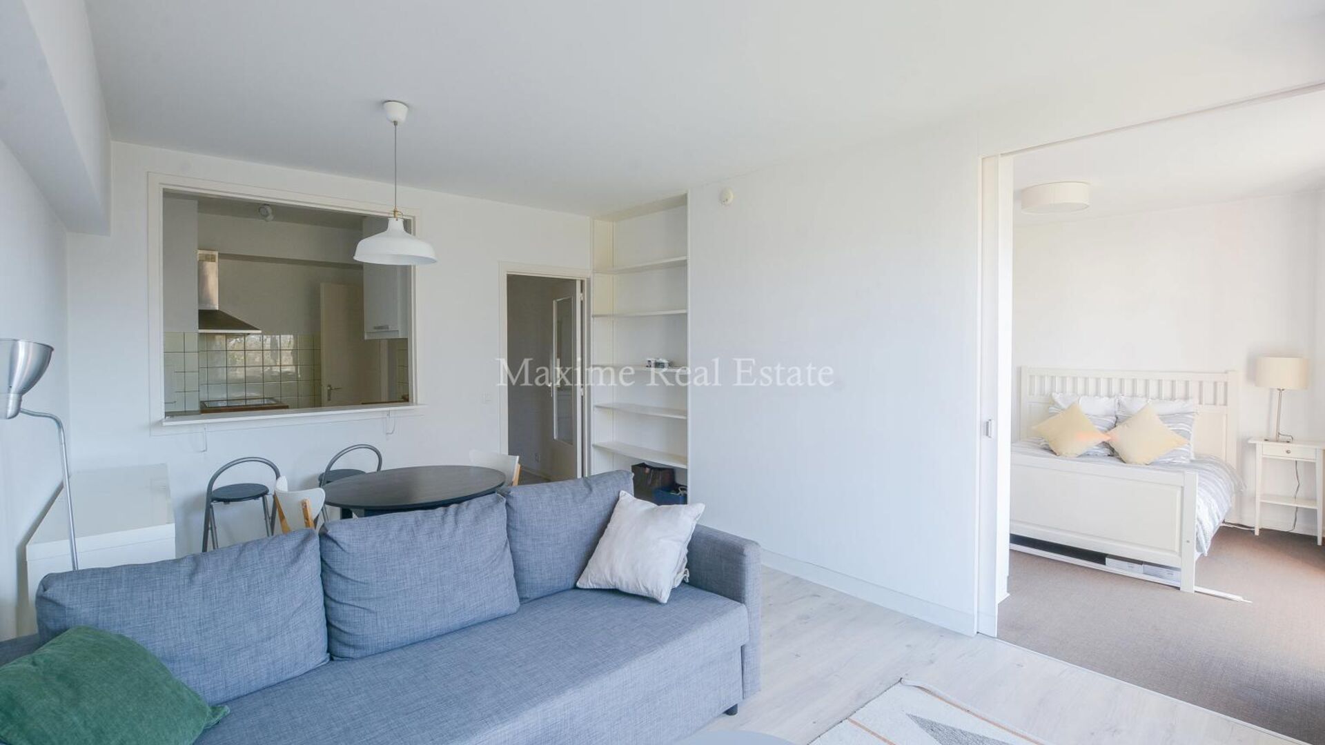 Hall d’entrée avec toilette séparée et vestiaire, lumineux séjour-salle à manger +/-20 m² donnant accès à une terrasse orientée sud-ouest avec vue dégagée. Cuisine entièrement équipée (frigo, four, lave-vaisselle, taque). Chambre à cocuher de +/-13 m² avec salle de bain attenante (baignoire,évier et machine à laver).