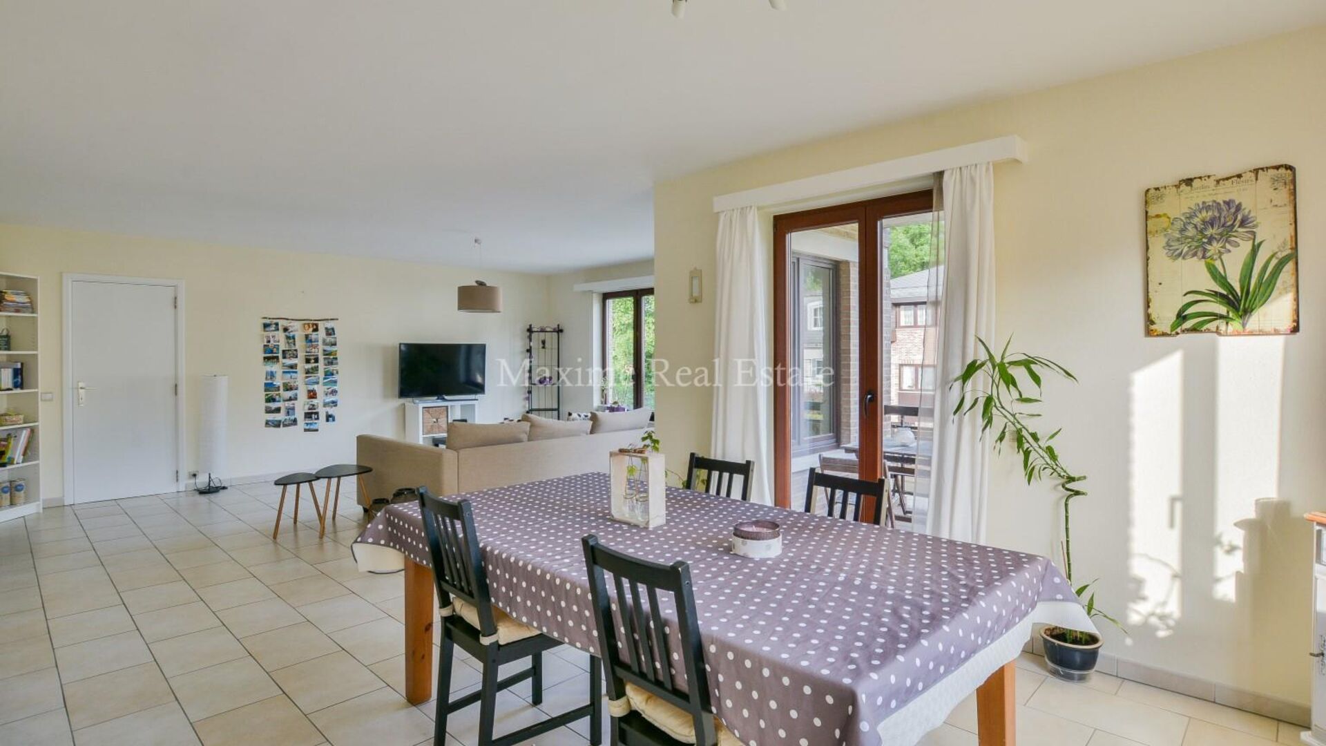 Il se trouve au 1er étage et se compose d'un hall d'entrée avec toilette séparée et un débarras/vestiaire, séjour-salle à manger de +- 40m² donnant accès à une terrasse +-4m², hall de nuit, 2 chambres à coucher (+-15m²,+-11m²), une salle de bains avec baignoire et double lavabo et toilette.