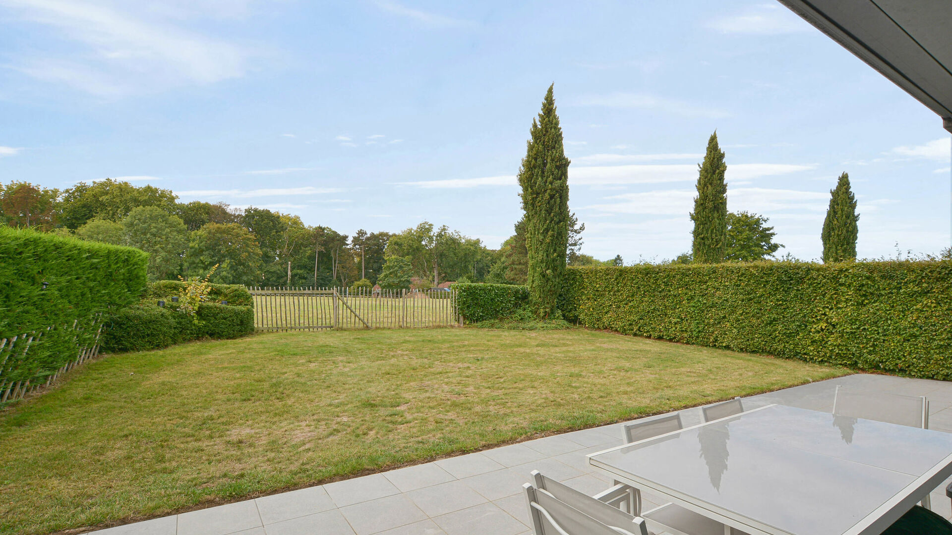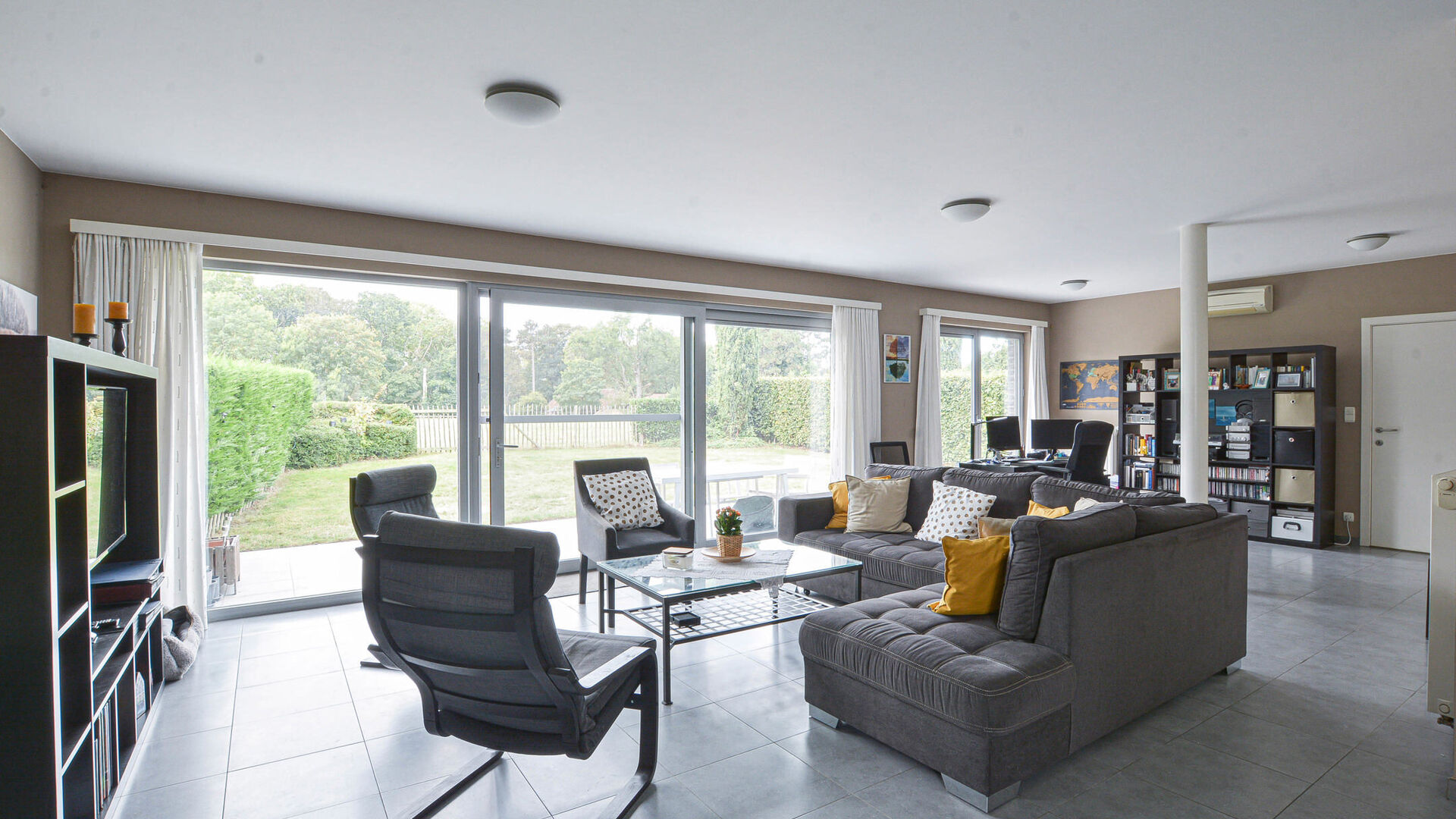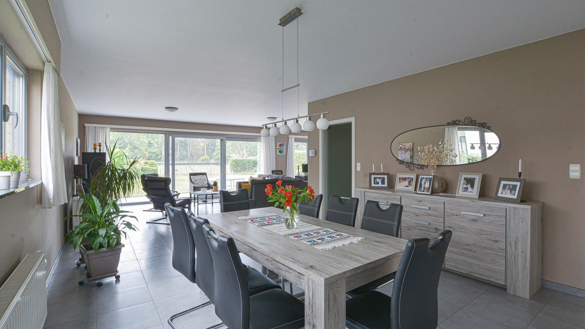 - Spacieux et lumineux séjour-salle à manger +/- 65 m², donnant accès à un jardin orienté sud avec terrasse et vue dégagée sur les champs environnants