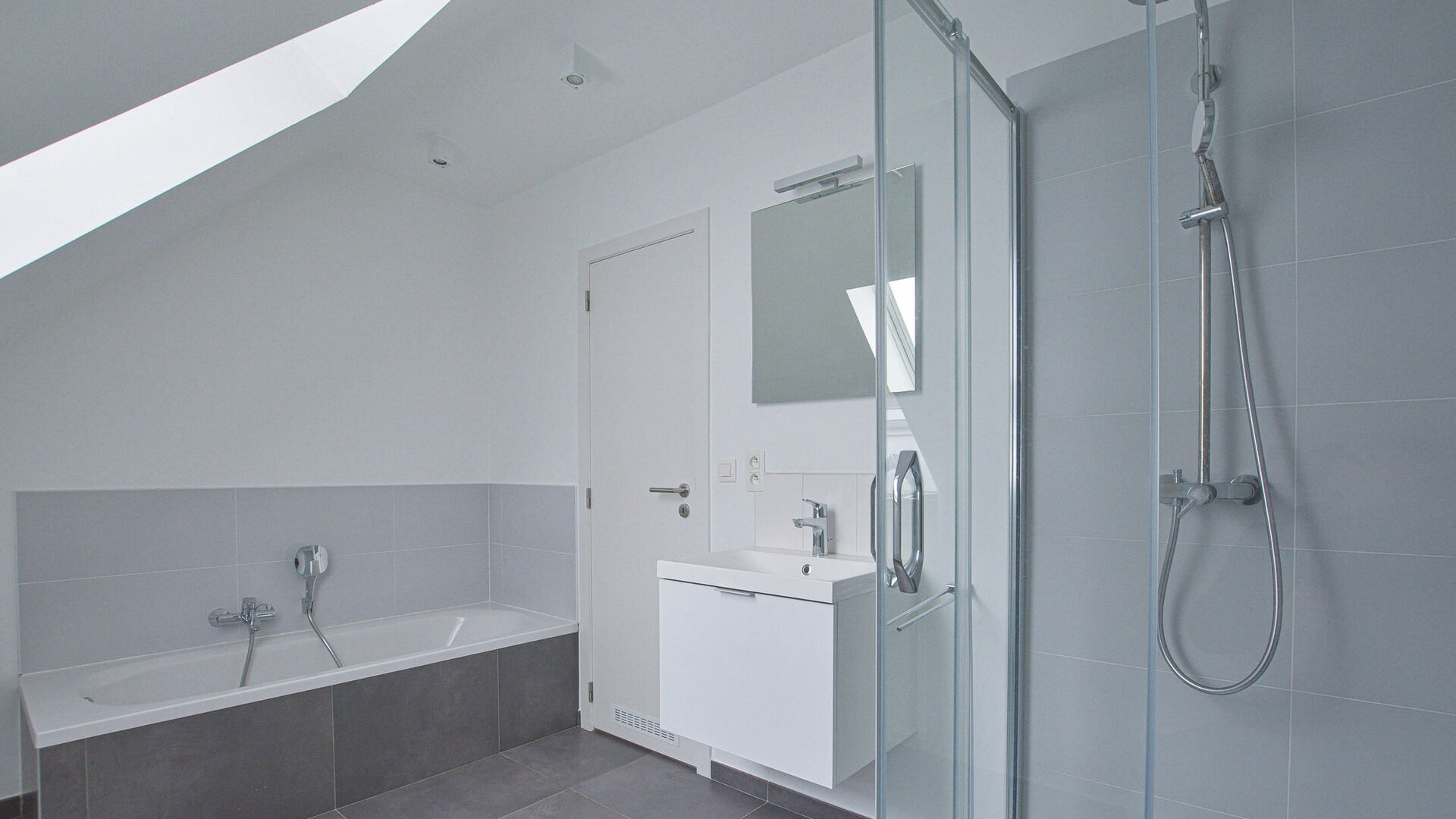 - 2e étage : Hall de nuit avec troisième toilette, deux chambres à coucher de +/-27-11m² et une 3ème salle de bains (baignoire, douche et double évier)