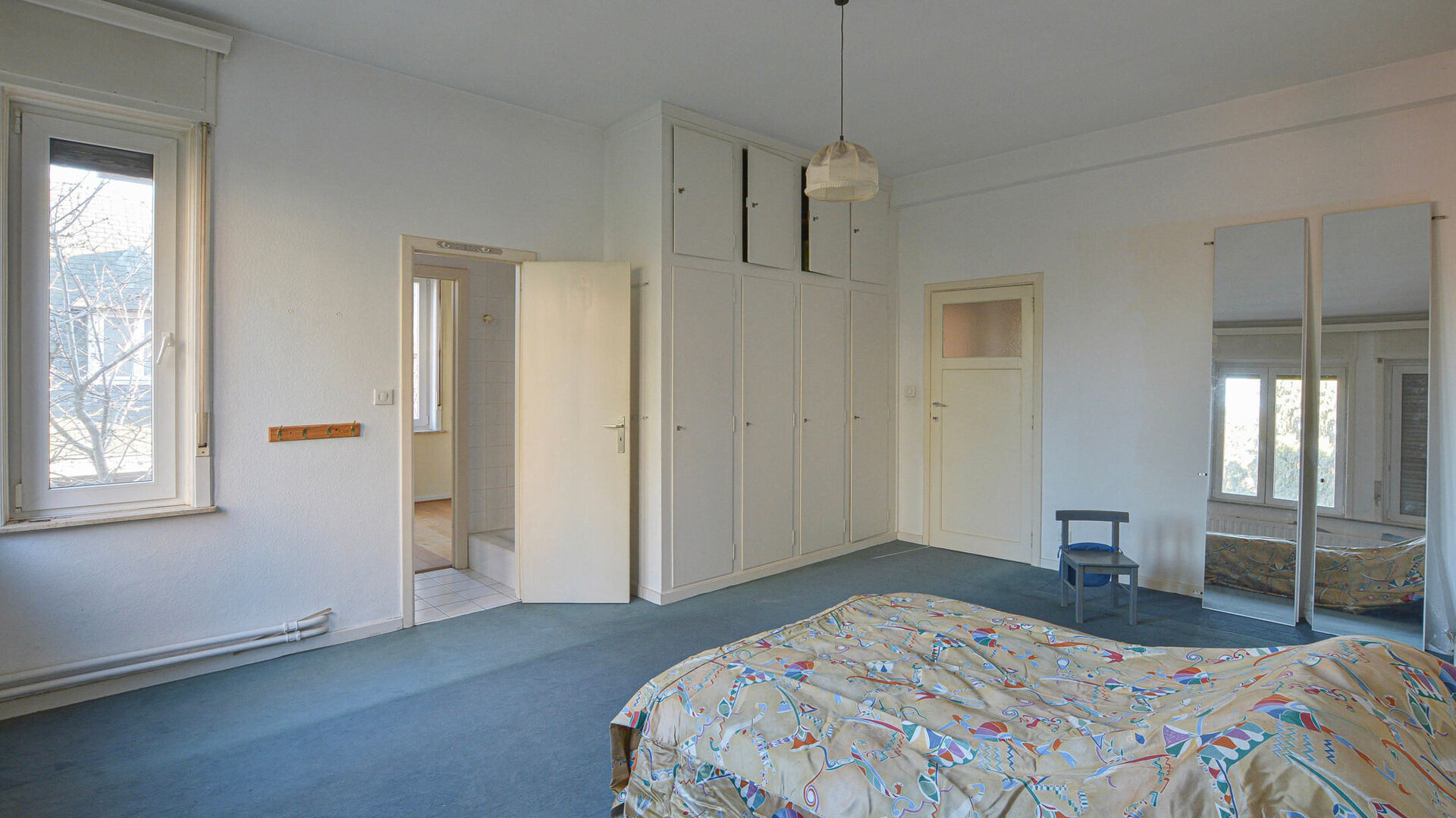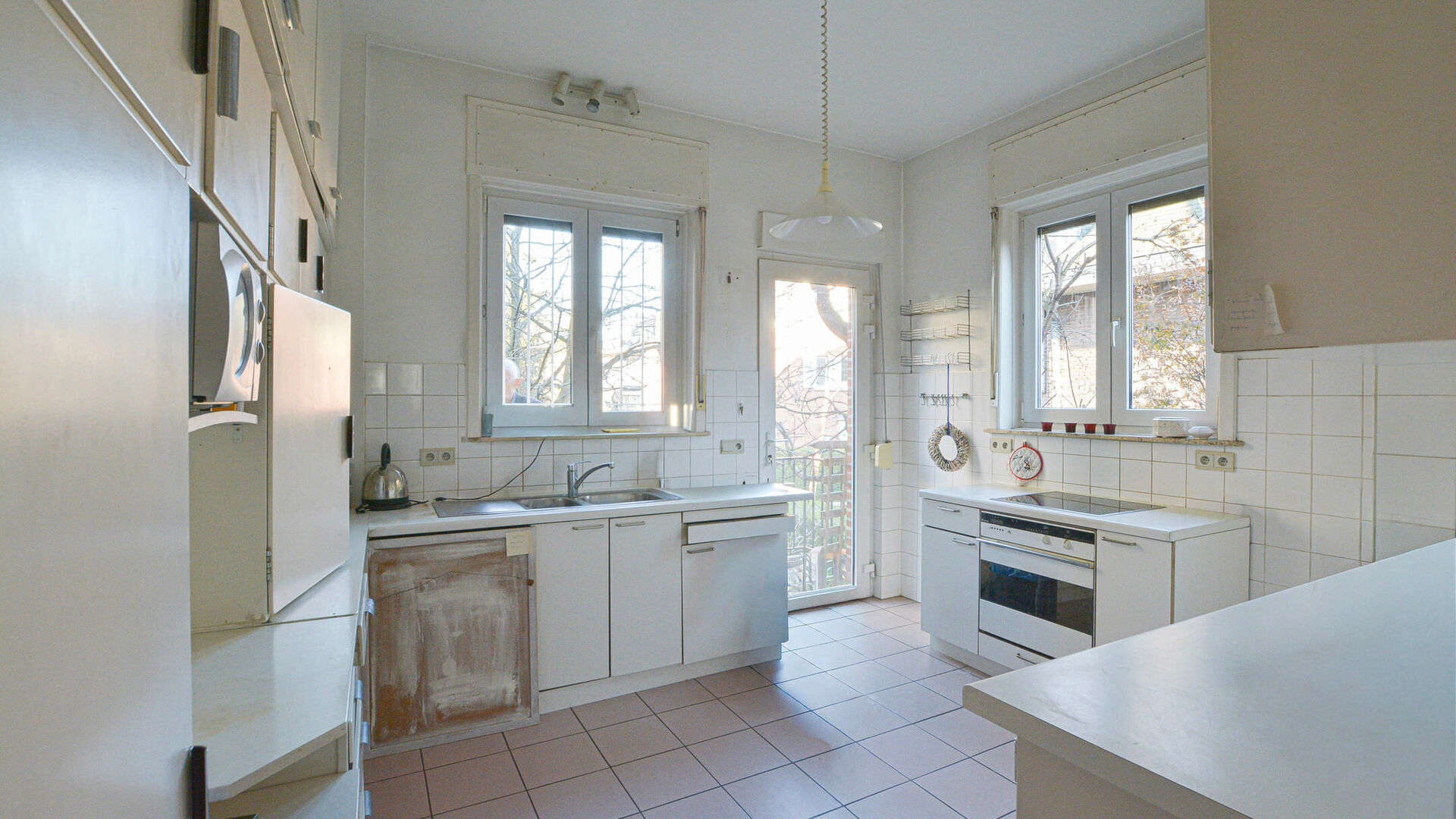 Un hall d’entrée accueillant avec vestiaire et WC séparé, un spacieux séjour, une salle à manger, un bureau d’environ 14 m² et une cuisine à repenser selon vos envies, avec accès direct à la terrasse et au jardin. 1er étage :