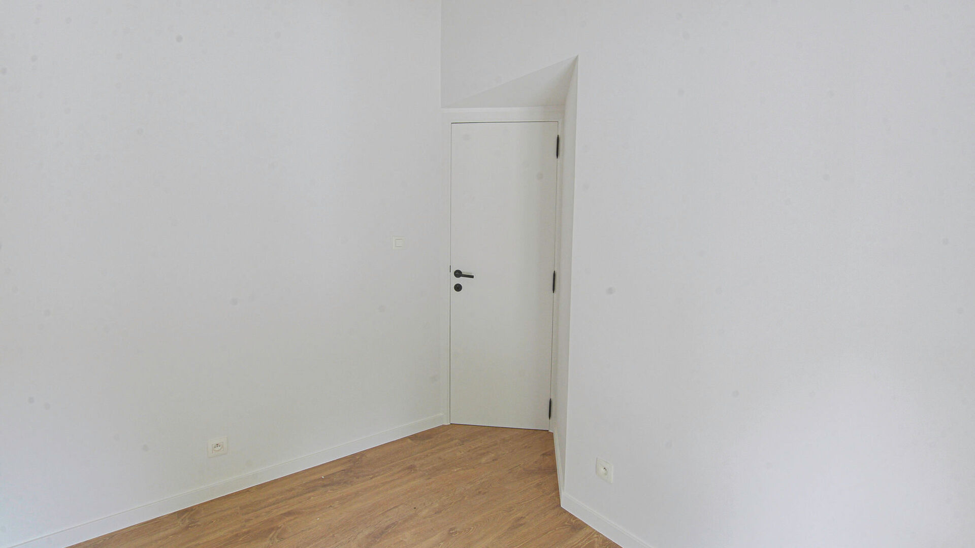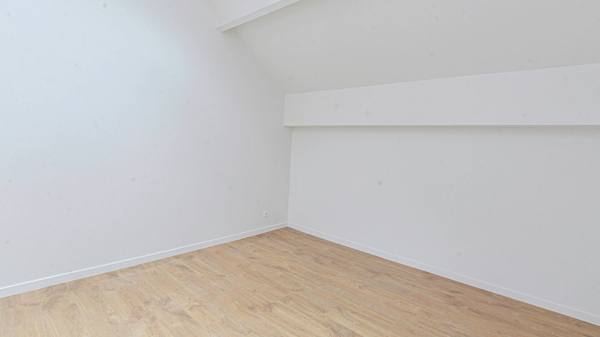 1er chambre à coucher de +/-15 m² avec espace dressing // 2e chambre à coucher/bureau de +/-7 m² // salle de douche avec baignoire, évier et WC // connexion pour machine à laver