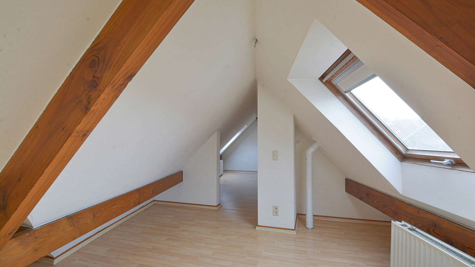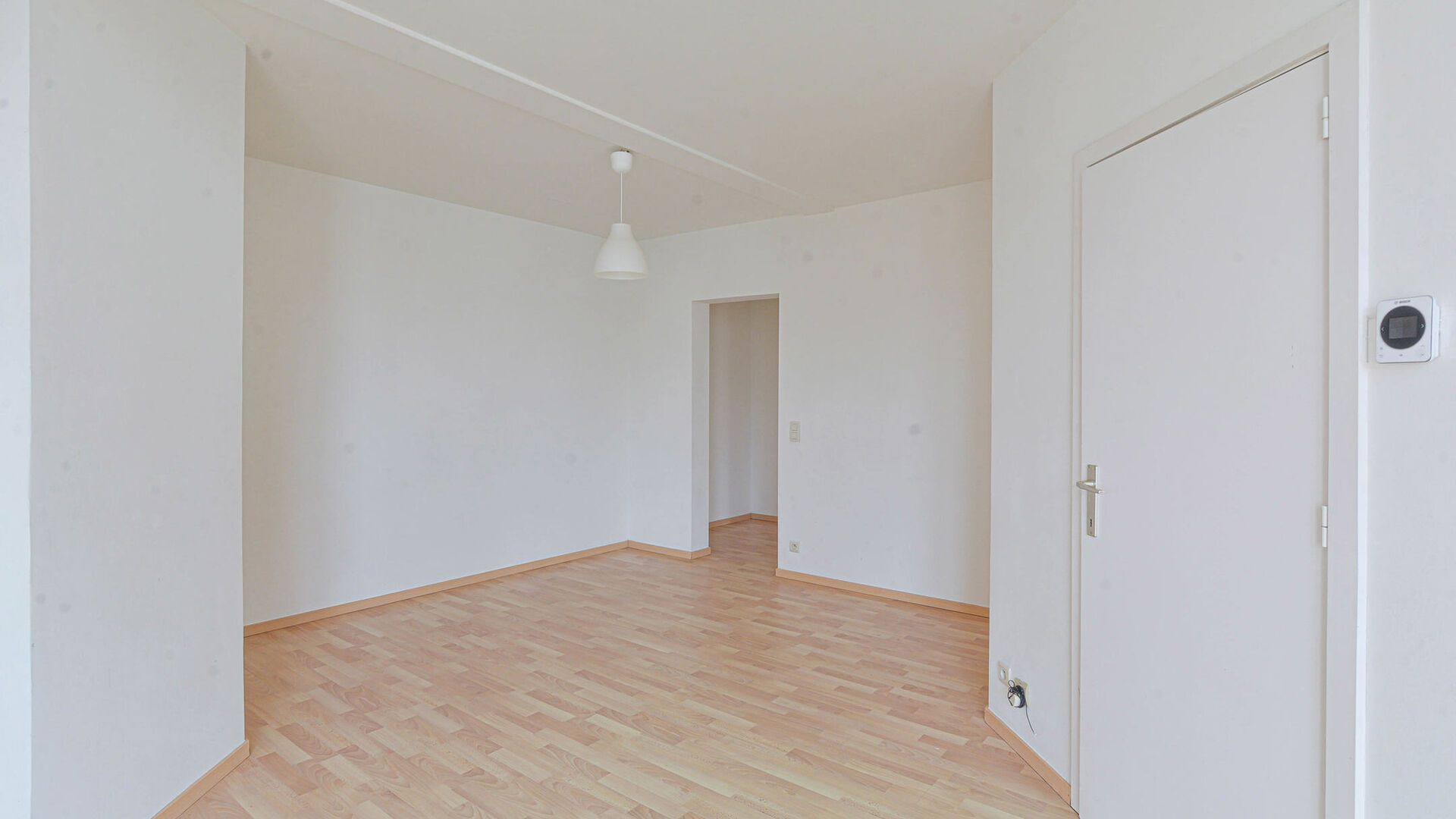 Entrée, lumineux séjour-salle à manger +/-27m² donnant accès à une petite terrasse, cuisine équipée, hall de nuit avec toilette, première chambre à coucher +/-14m² avec salle de bains attenante (baignoire avec douche, évier et emplacement machine à laver). 2ème chambre à coucher/pièce polyvalente +/-16m² sous mezzanine avec coin bureau.
