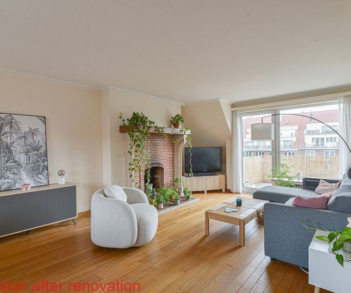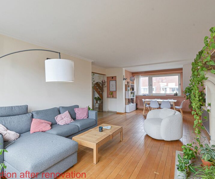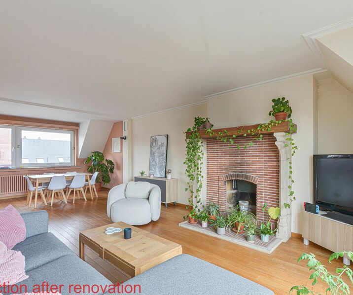 Ce charmant appartement duplex de +/- 108m² (selon PEB) a besoin d’une rénovation complète. Situé au dernier étage, il se compose comme suit :