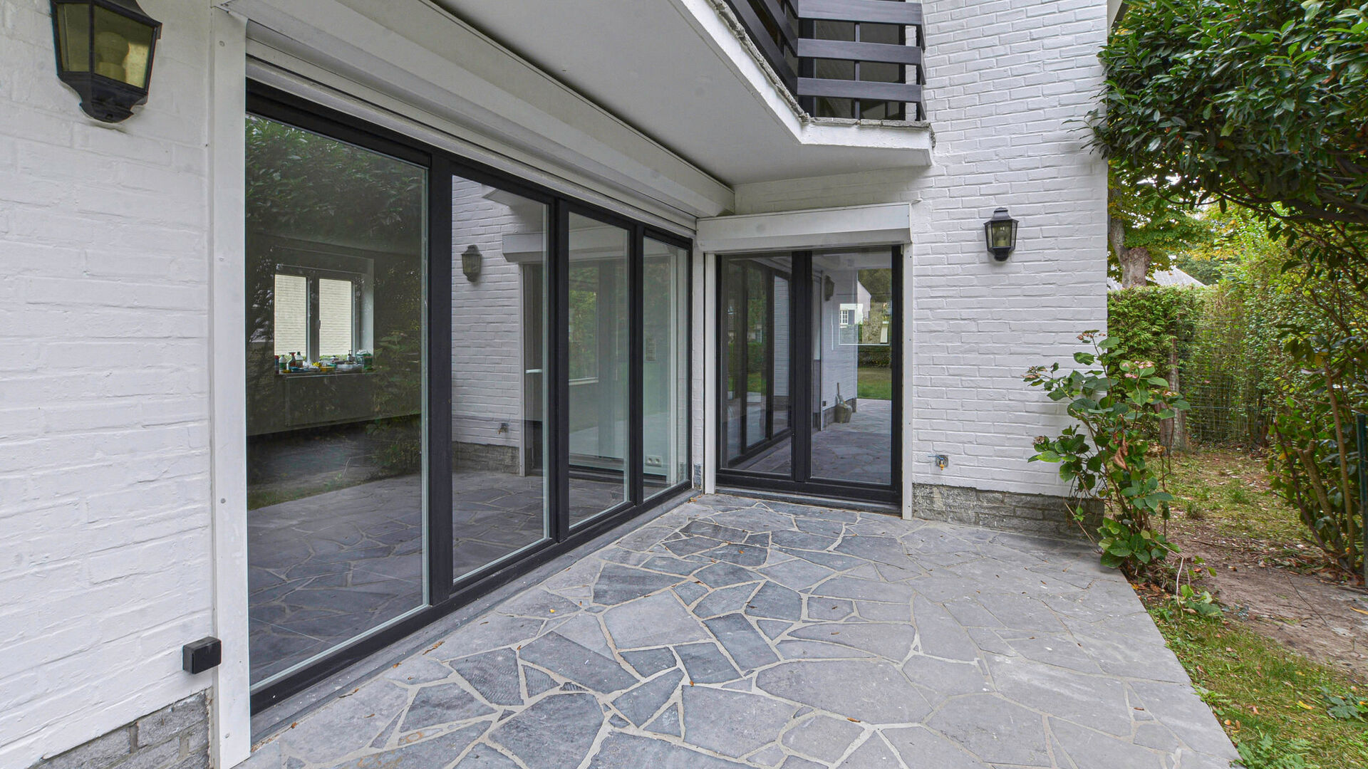 Hall d'entrée avec vestiaire et toilette séparée // séjour lumineux +/- 45m² avec feu ouvert, donnant accès au jardin plein sud // cuisine NEUF super équipée avec coin à déjeuner (frigo/freezer, four, micro-ondes, lave-vaisselle, taques induction, hotte, ...) //