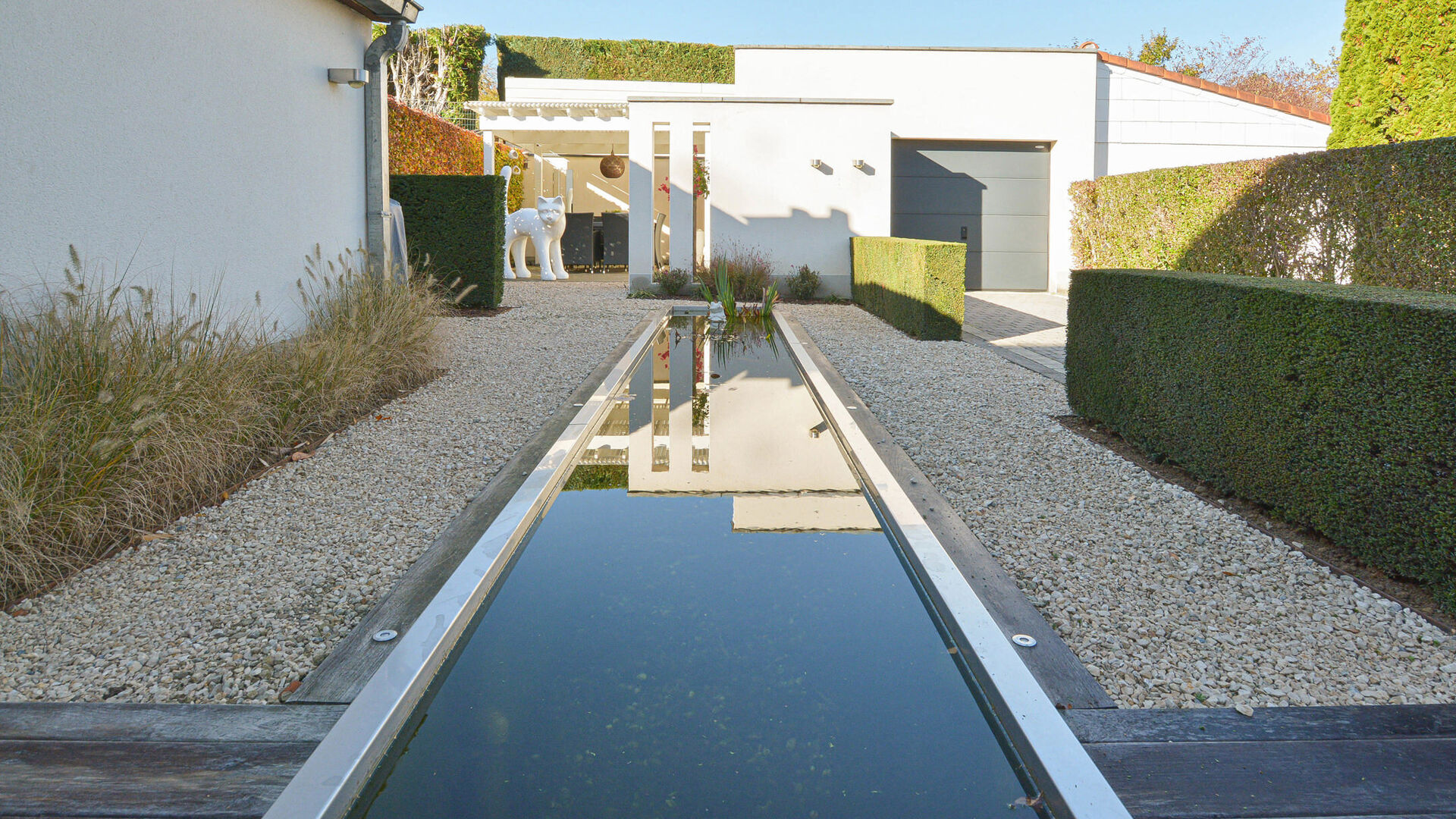 - Terrasse paysagée avec étang et coin détente