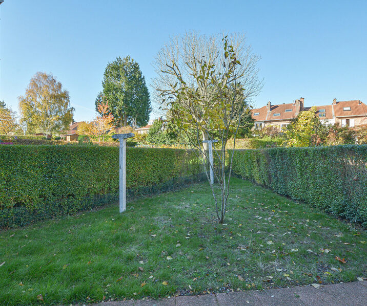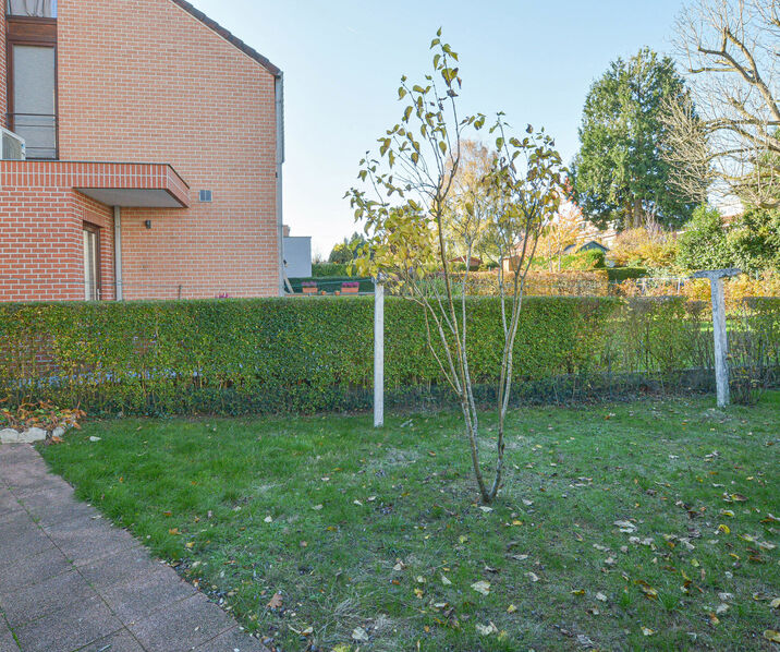 - Rez-de-chaussée: Hall d'entrée avec toilette d'invités, lumineux séjour-salle à manger de +/-30m², veranda donnant accès au jardin avec terrasse, cuisine spacieuse entièrement équipée.