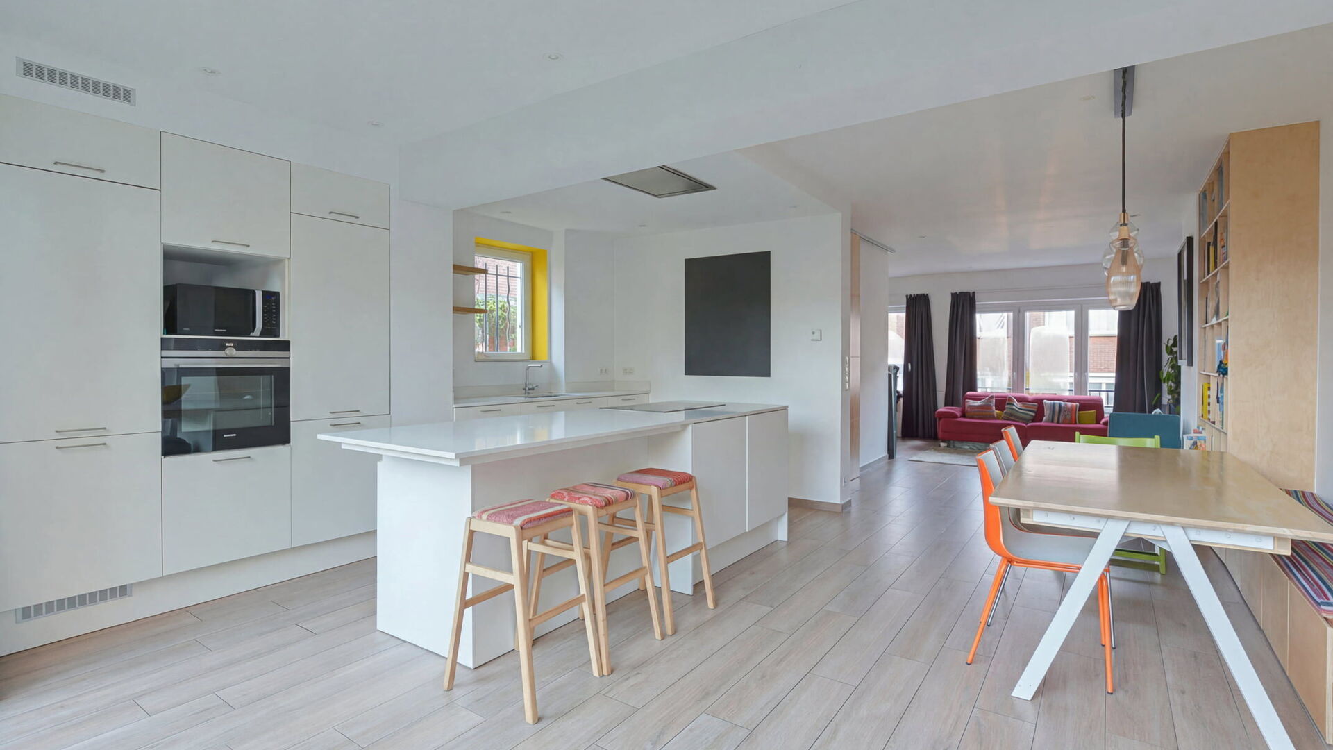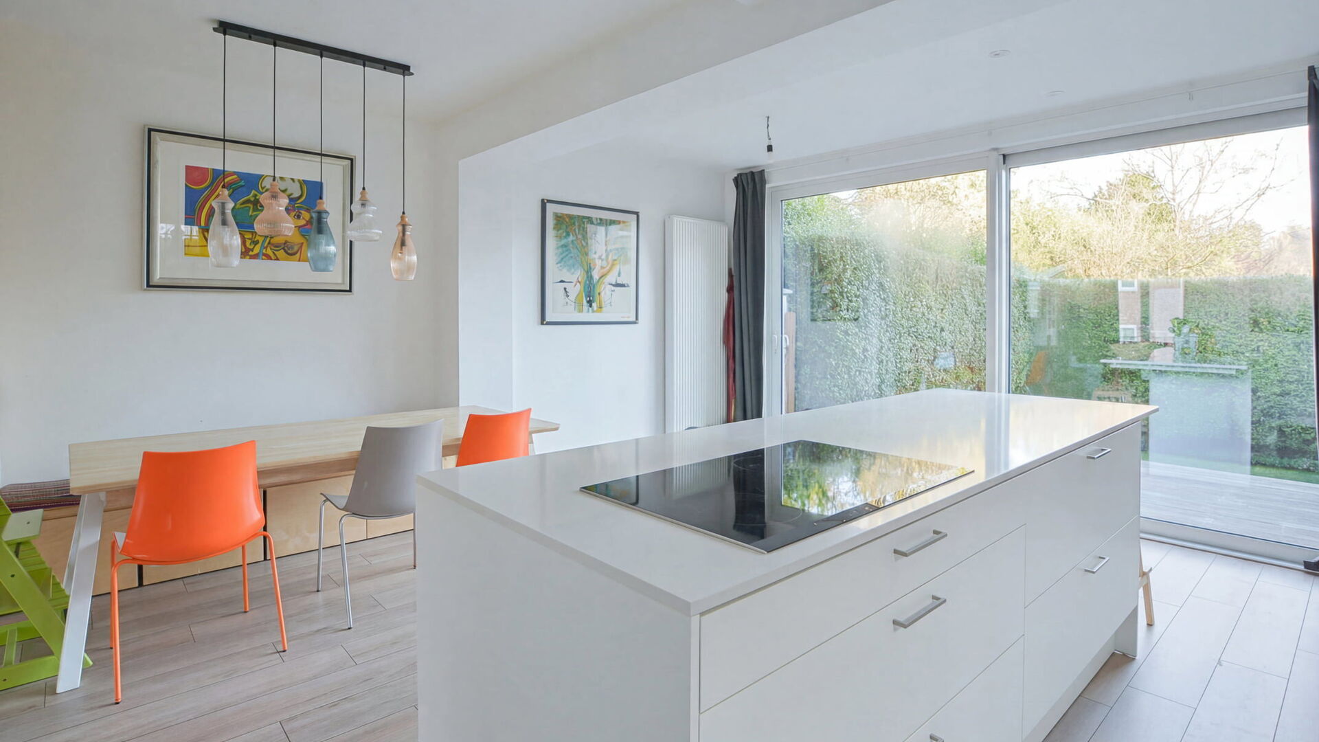 Au premier étage, vous découvrirez un agréable palier menant vers un spacieux séjour et une salle à manger d’environ 40 m². La cuisine ouverte, entièrement super équipée et dotée d’un coin déjeuner, s’ouvre sur une large baie vitrée donnant accès à la terrasse et au jardin, offrant ainsi une belle luminosité et une agréable connexion avec l’extérieur.