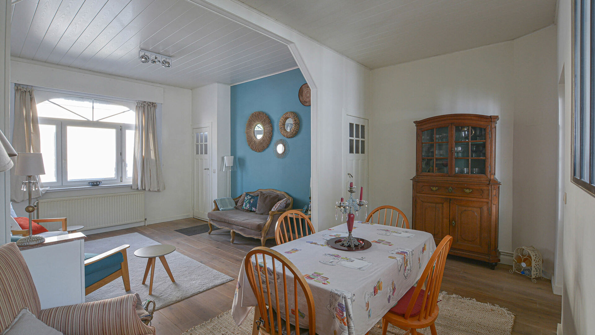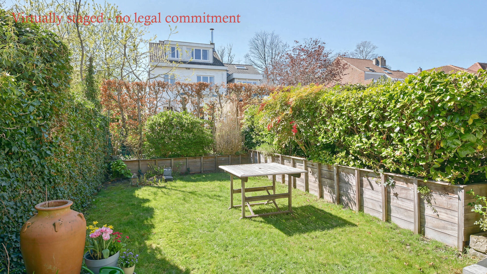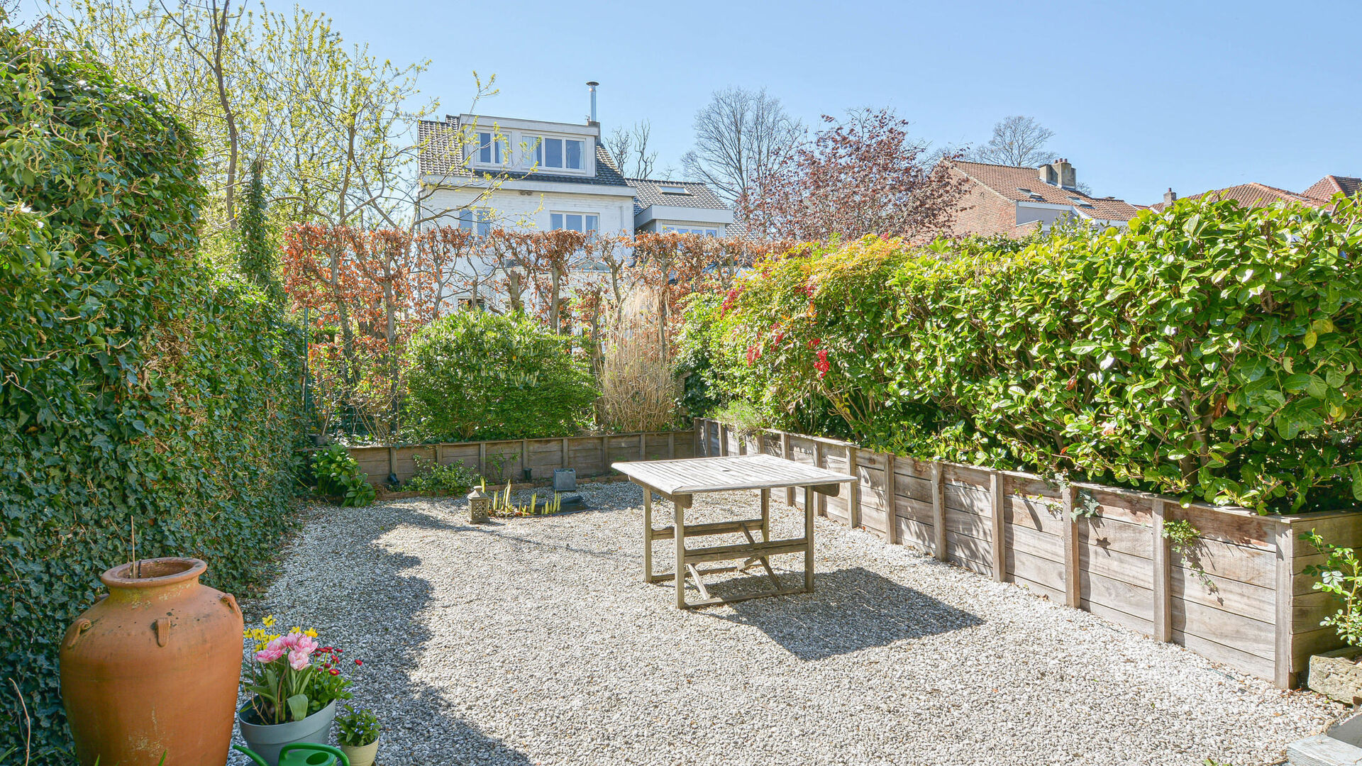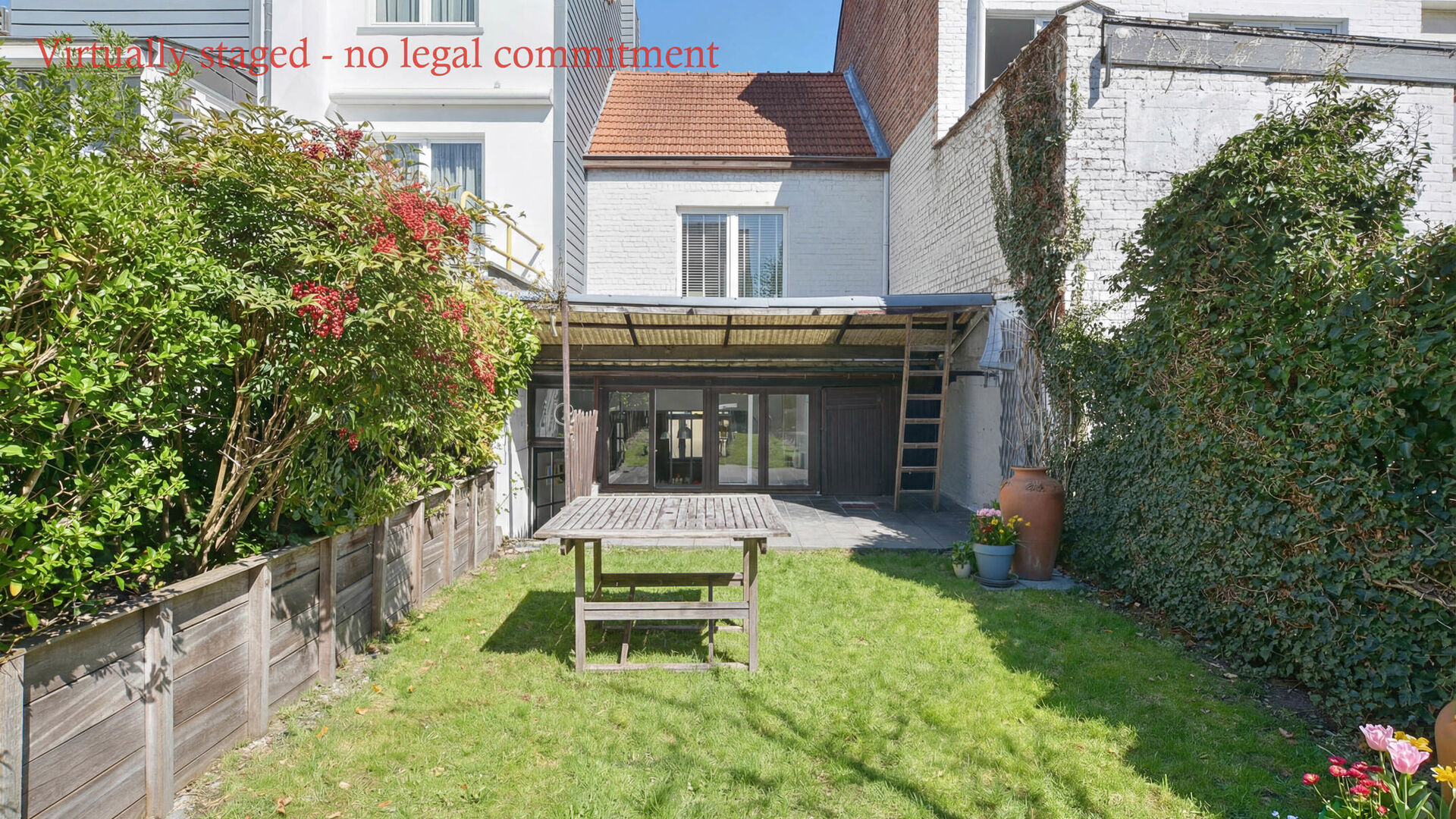 Rez-de-chaussée : hall d’entrée, lumineux séjour-salle à manger de ±27 m², toilette séparée, cuisine entièrement équipée avec coin déjeuner et donnant accès à la terrasse et à la cour arrière de ±30 m², pouvant être aménagée en jardin.