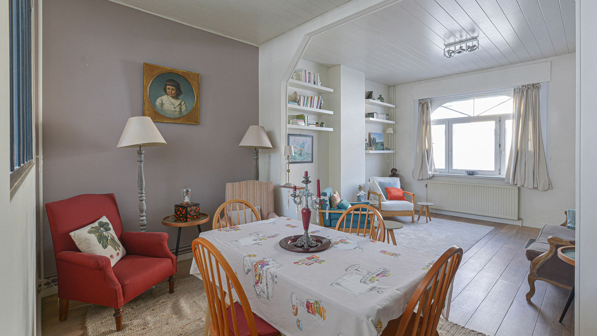 Cette belle maison bien entretenue de +/-95m² (selon PEB), construite en 1936 sur un terrain de 1a05ca, se compose comme suit :