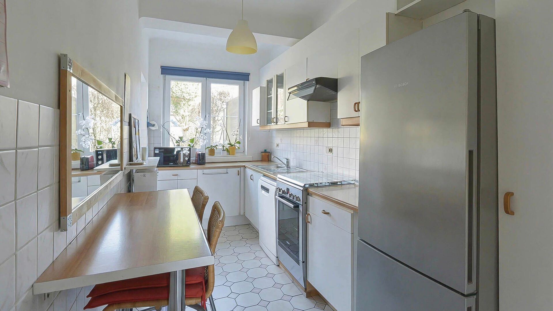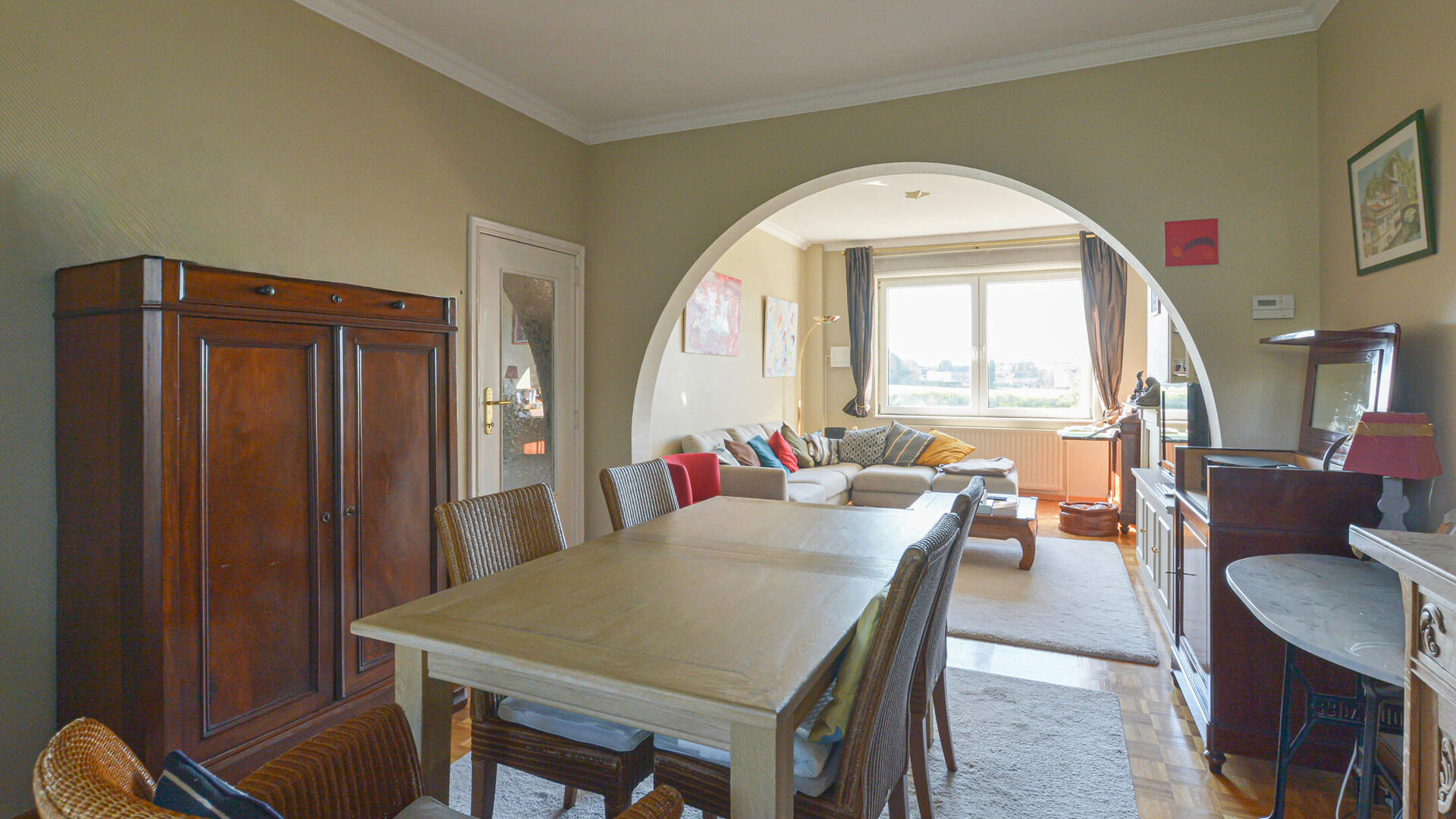 - Rez-de-chaussée : Hall d’entrée avec toilette séparée, lumineux séjour et salle à manger de+/-30m², cuisine équipée donnant accès à une agréable terrasse et beau jardin avec abri de jardin.