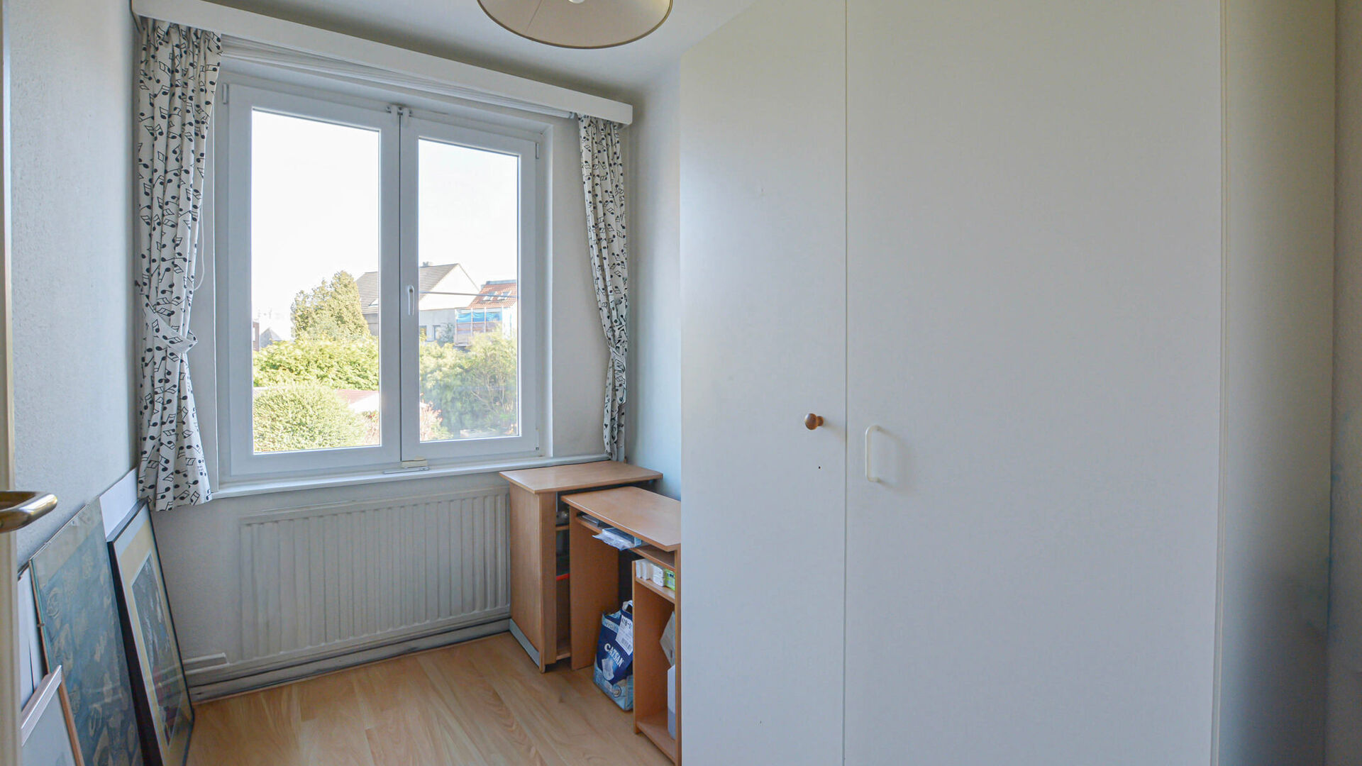 - 1er étage : Deux grandes chambres de +/- 15-14 m², une troisième chambre de +/- 6m² (idéale comme bureau ou chambre d’enfant) et une salle de bains rénovée avec douche, toilette et évier.