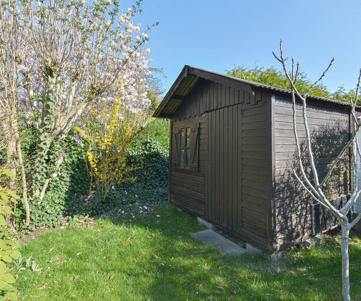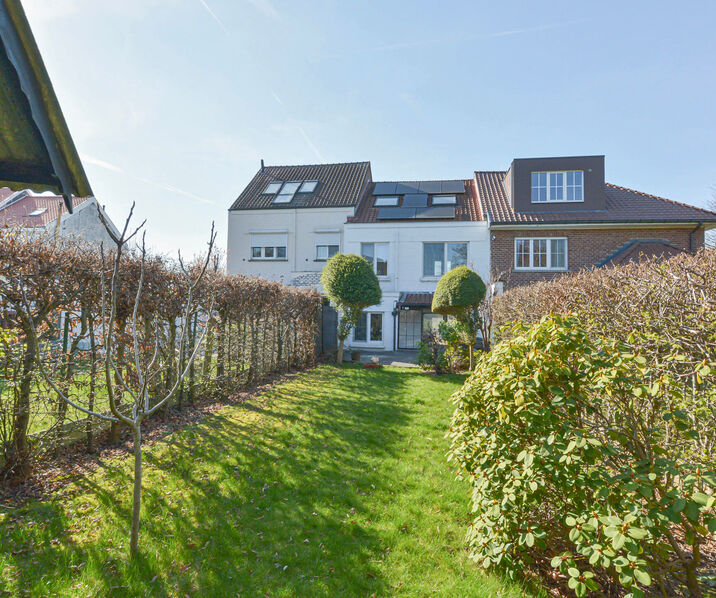 - Rez-de-chaussée : Hall d’entrée avec toilette séparée, lumineux séjour et salle à manger de+/-30m², cuisine équipée donnant accès à une agréable terrasse et beau jardin avec abri de jardin.