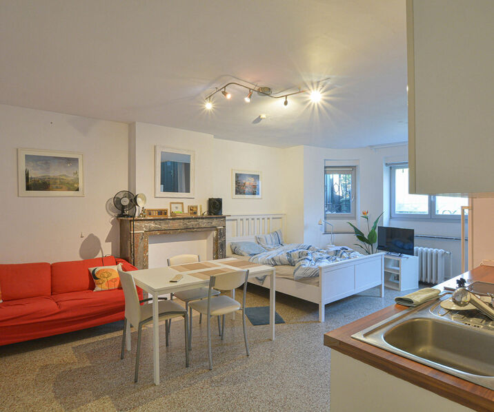 - Studio avec cuisine, salle de douche avec WC et espace de rangement.