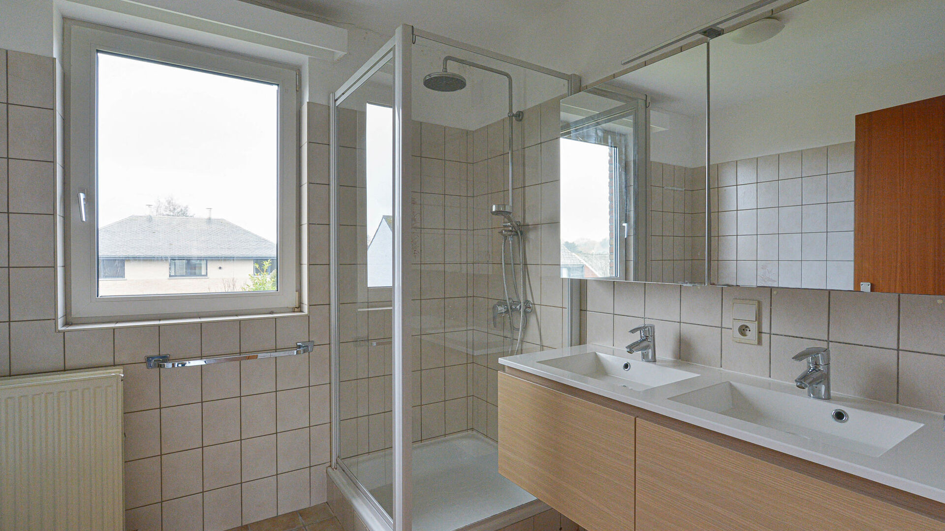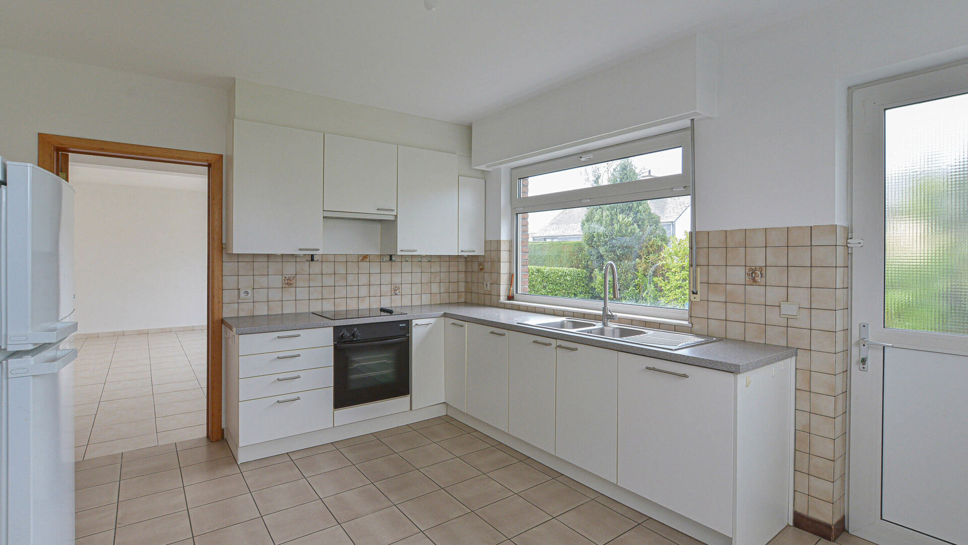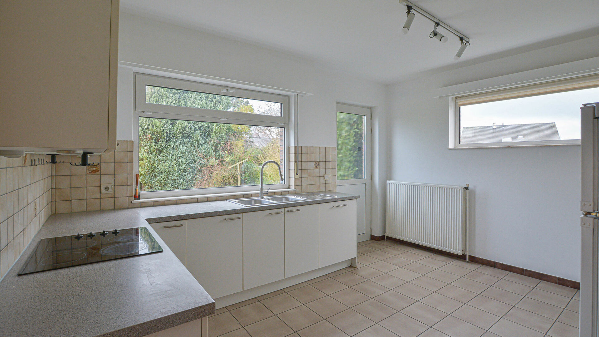 - Rez-de-chaussée : hall d’entrée avec toilette invités, une première chambre ou bureau +/-14 m², un lumineux séjour avec salle à manger d’environ +/-45 m² avec feu ouvert et accès à une agréable terrasse orientée sud-ouest d’environ +/-24 m² avec un jardin attenant +/-300 m², ainsi qu’une cuisine entièrement équipée avec de nombreux espaces de rangement.