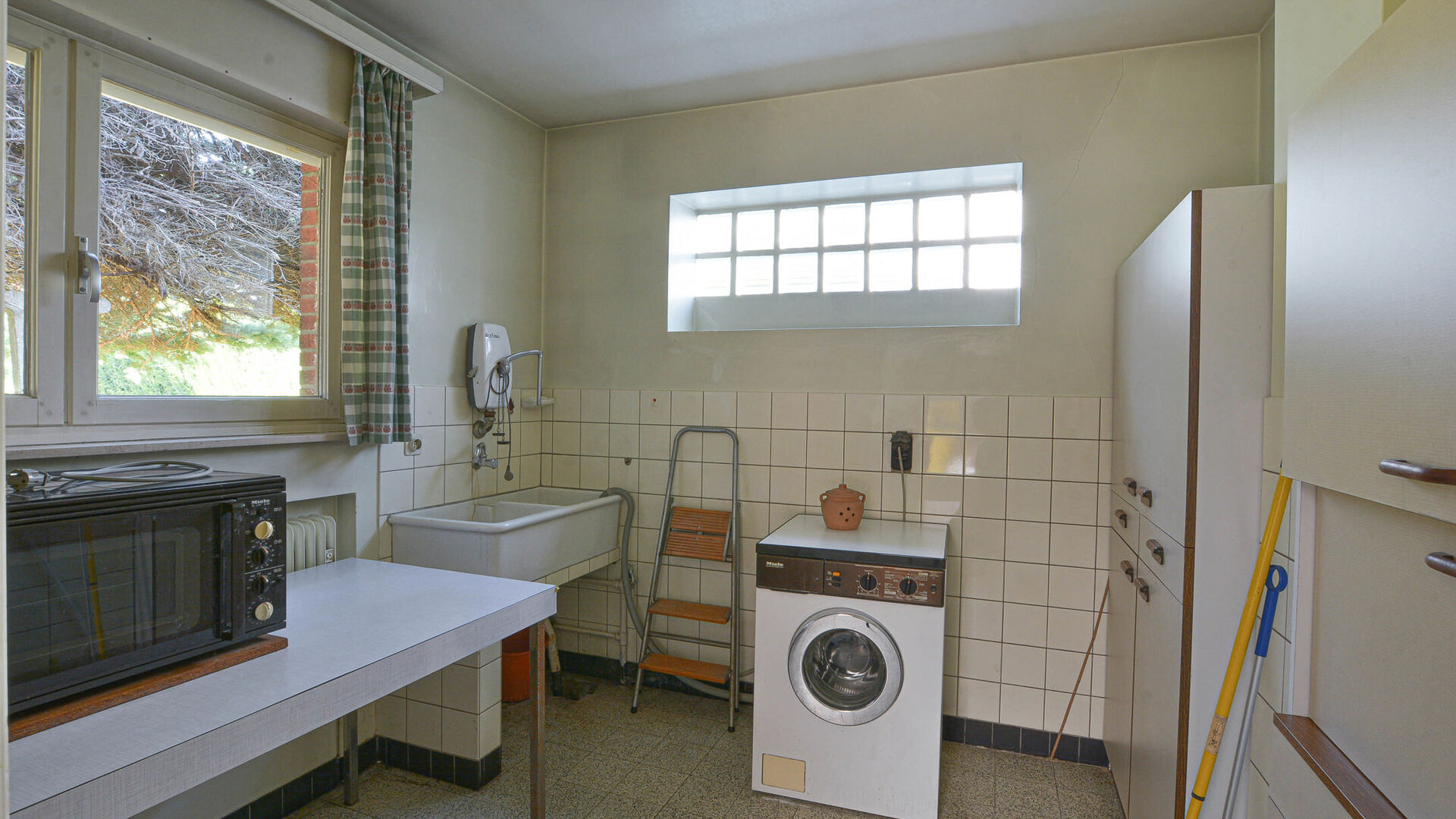 Cette villa à rénover est implantée sur un terrain d'environ 15 ares, dans un quartier résidentiel proche de STOKKEL, des transports en commun, des grands axes routiers et de plusieurs écoles.