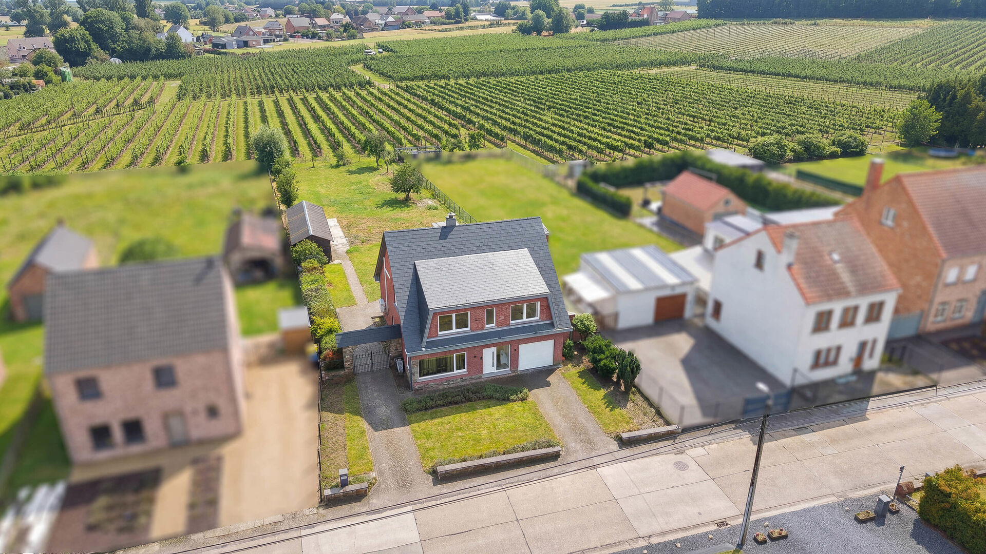 La propriété est située dans un quartier résidentiel calme, entouré de vergers, garantissant un cadre de vie verdoyant et agréable.
