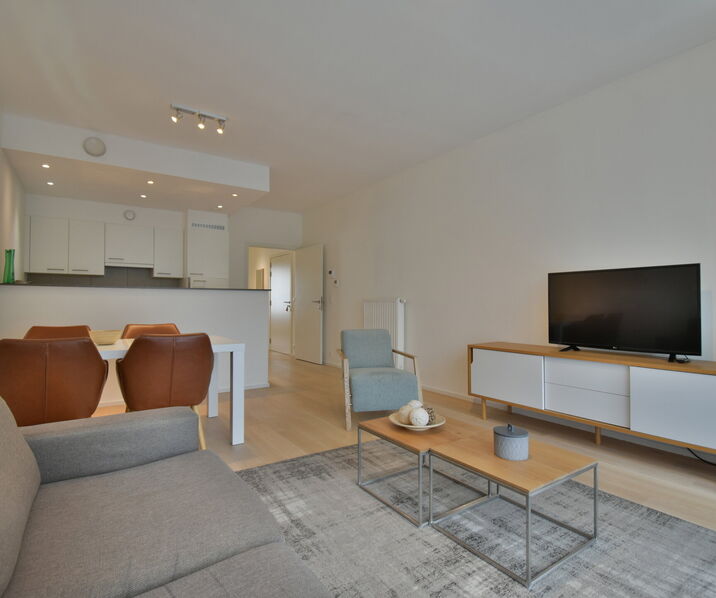 Dit modern appartement +/- 64m² bevindt zich op de 1e verdieping en is als volgt ingedeeld: