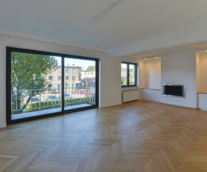 Inkomhal met apart toilet en vestiaire // lichtrijke woonkamer +/- 31,6 m² met toegang tot een eerste terras // ingerichte keuken (elektrische kookplaten, oven, vaatwasser, koelkast en diepvriezer) met toegang tot een tweede terras // nachthal met ingebouwde kast // eerste slaapkamer +/- 13,4 m² // tweede slaapkamer +/-11 m² met wastafel // derde slaapkamer/bureau +/-. 9 m² met toegang tot een balkon // badkamer met ligbad, wastafel en wasruimte (momenteel in renovatie) // kelder //