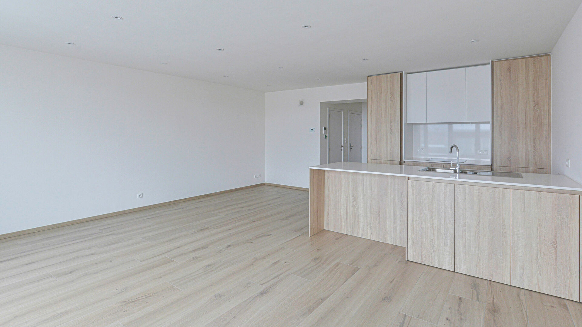 Inkom, gastentoilet, lichtvolle woon-eetkamer +/-28m², volledig uitegeruste open keuken (kookplaat, oven, micro-golfoven, vaatwasser) met centraal kookeiland en ontbijthoek. 2 slaapkamers +/-12-10 waarvan de kleinste toegang geeft tot het terras, badkamer met alle comfort (ligbad, inloopdouche, dubbele wastafel en toilet).