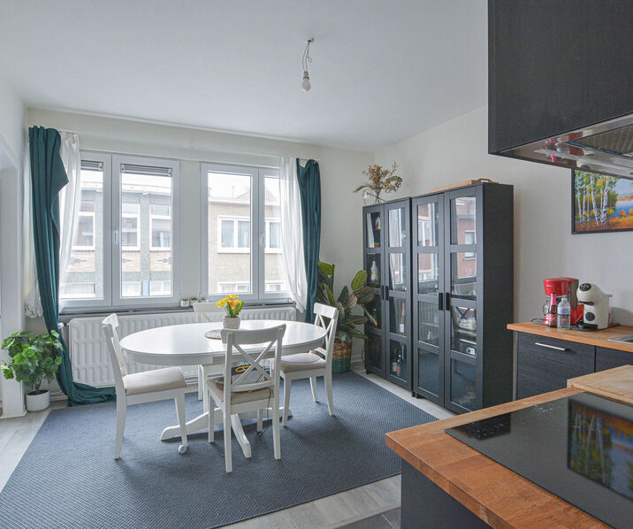 Mooi gemeubeld appartement +/-65m² gelegen op het 2e verdiep van een klein appartementsgebouw. Bestaande uit: