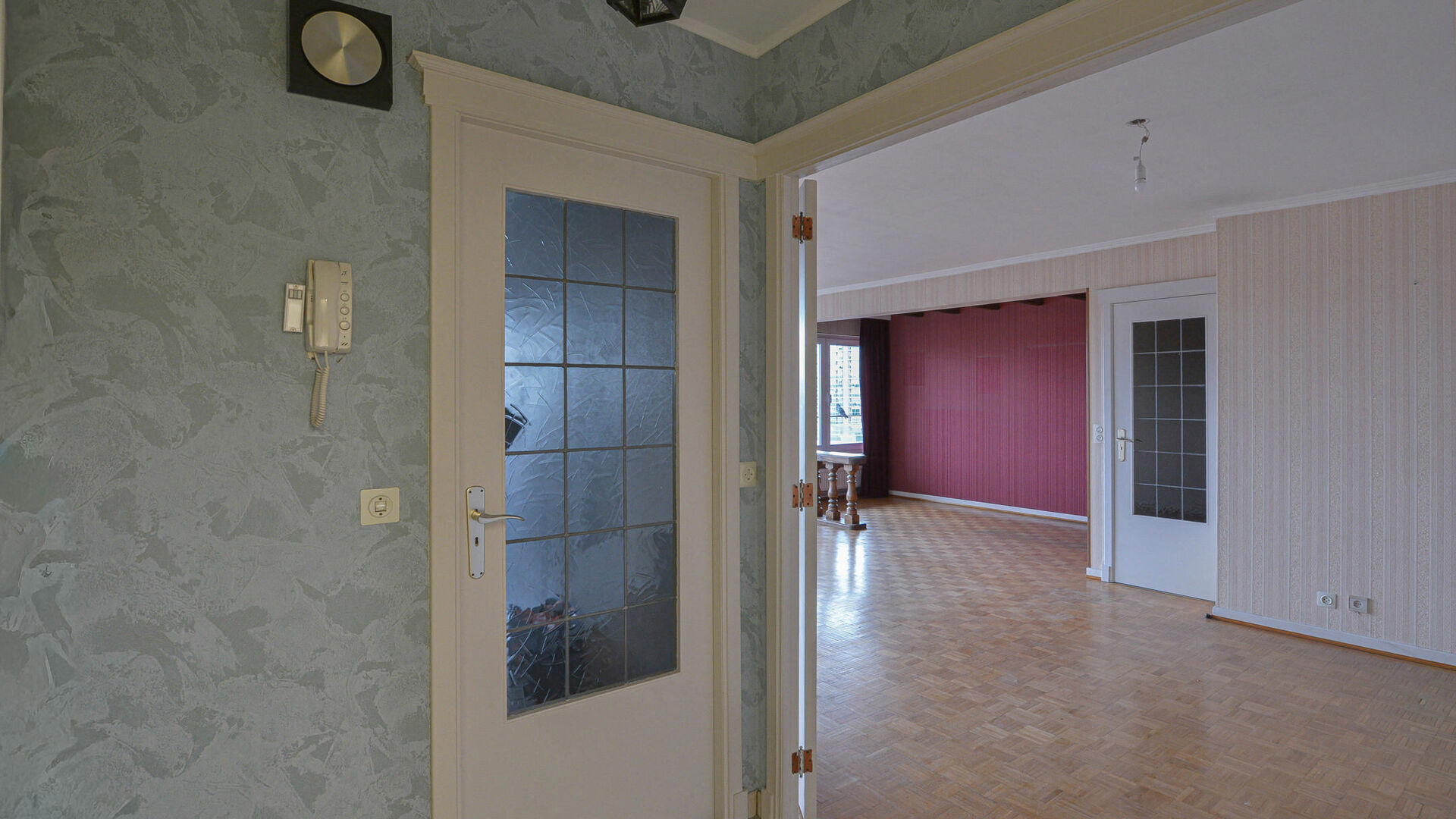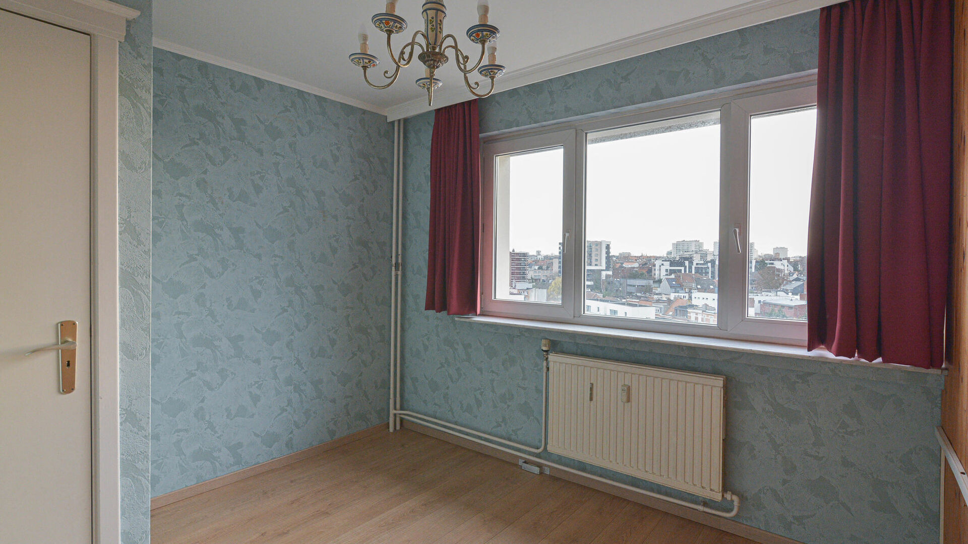 Dit appartement, officieel erkend als een 3-slaapkamerappartement, is momenteel ingedeeld als een 2-slaapkamerappartement, +/- 88m² (volgens het EPC) bevindt zich op de 9e verdieping en is als volgt ingedeeld: