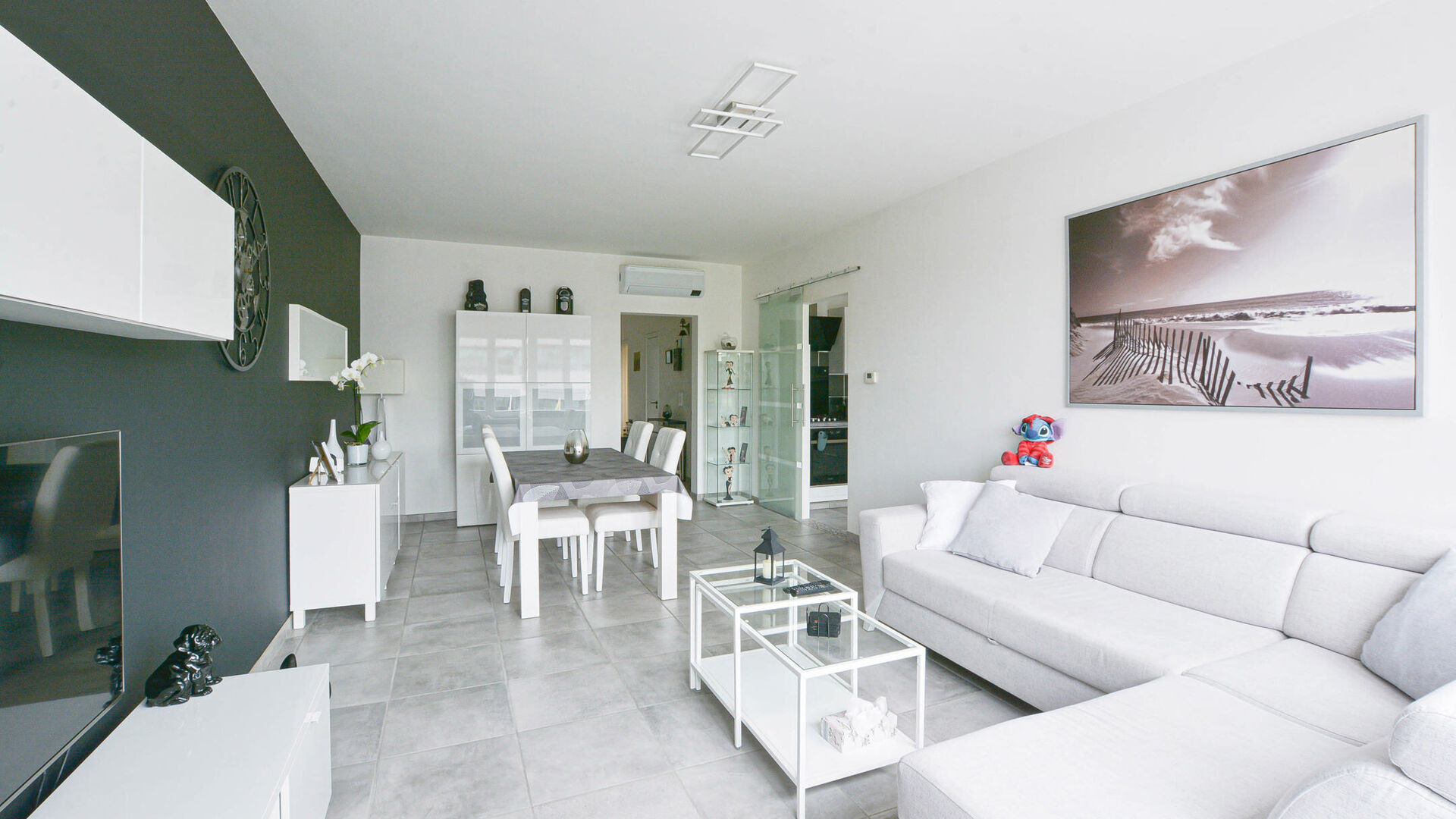 - Lichtrijke leefruimte–eetkamer van +/-27m²,
