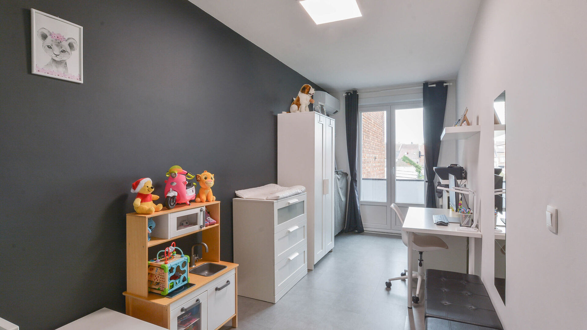 - Twee mooie slaapkamers van +/-15m² en 13m², beide met toegang tot een terras van +/-5 m²,