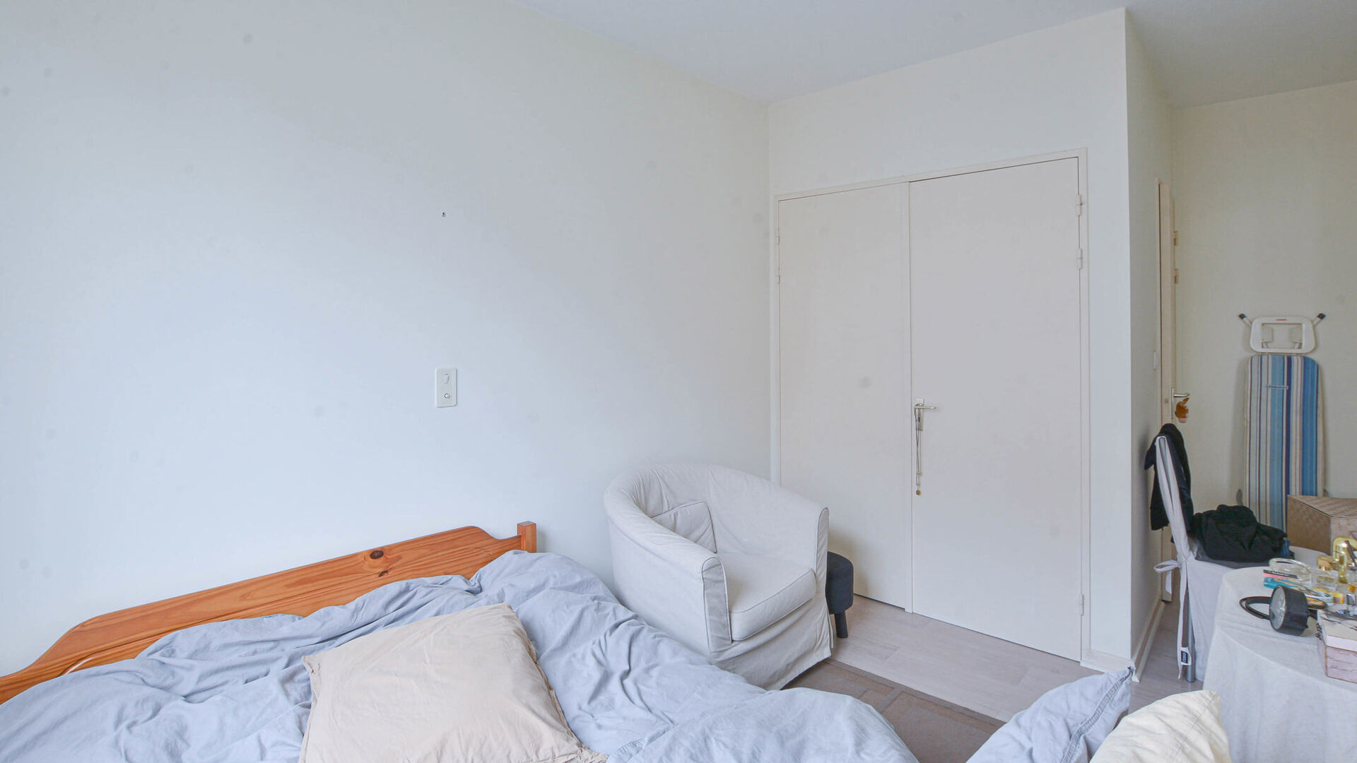 - Slaapkamer van ±10 m² met aangrenzende badkamer (bad met douche en lavabo).