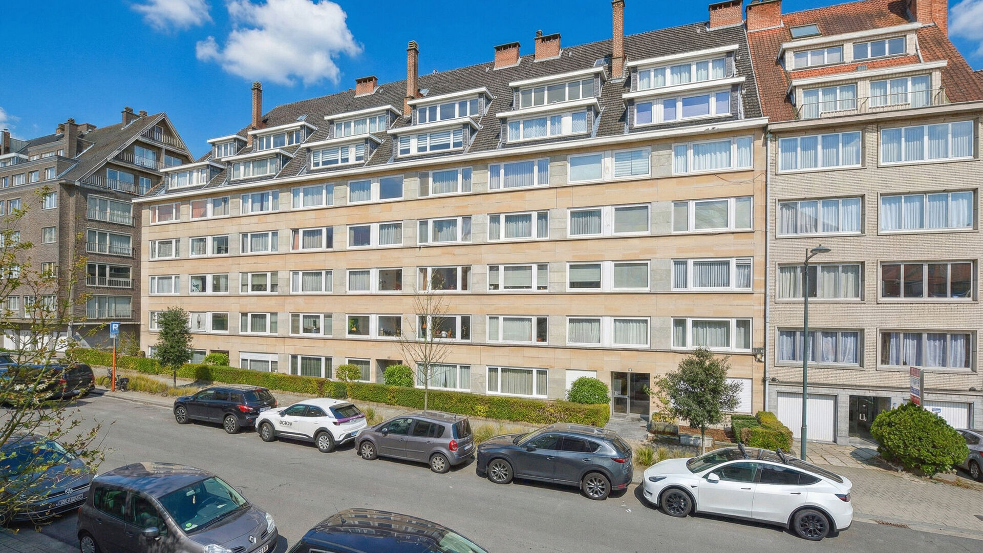 Een verplichte garage box+ 35.000€ en kelder worden samen met het appartement verkocht.