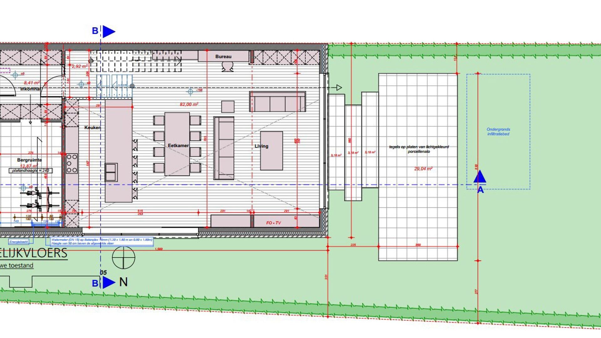 Voorschriften: Diepte begane grond max. 15M, diepte 1e verdieping max. 12M + zolderverdiep.