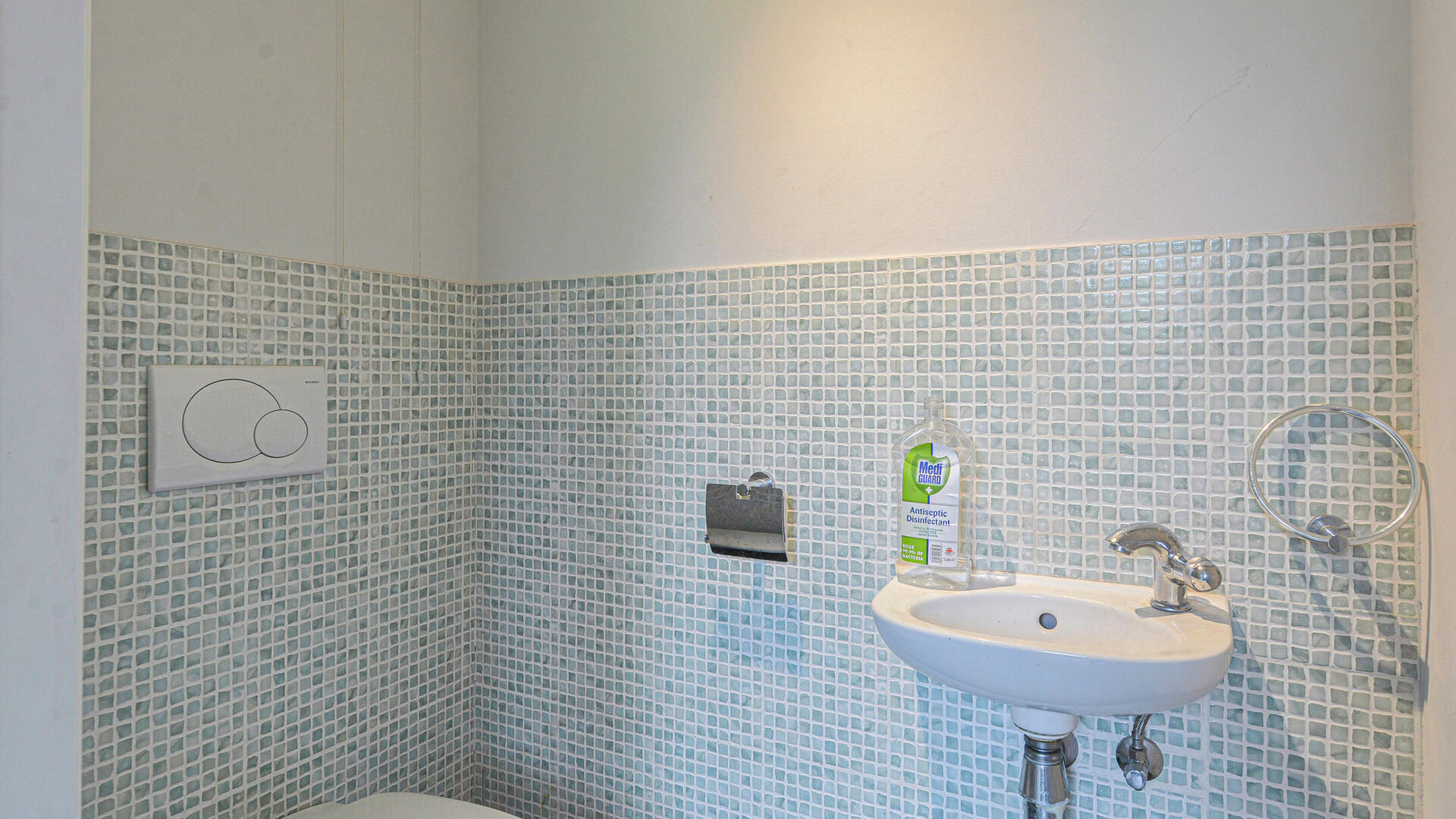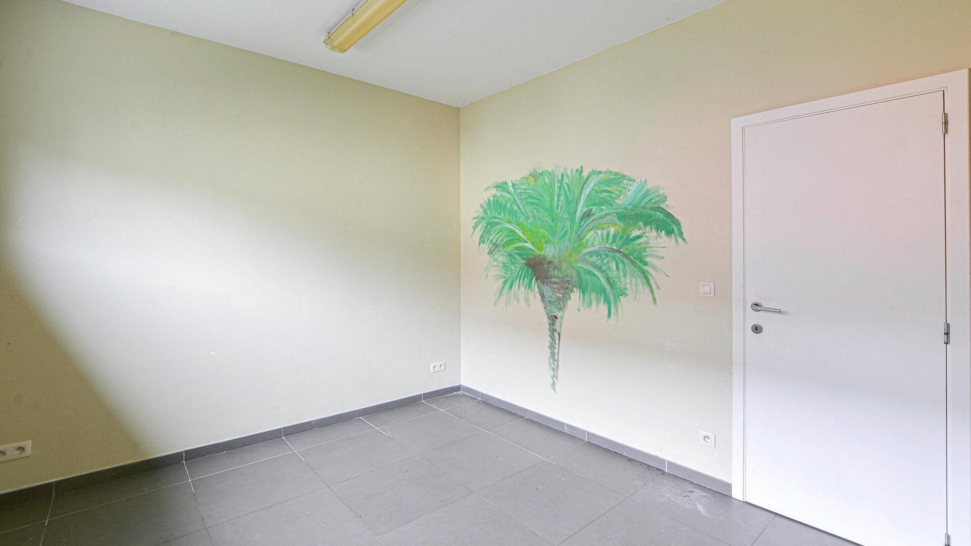 Het is als volgt samengesteld: commerciële ruimte/showroom +/-80m², kantoorruimte 13m² met een wastafel, kitchenette (kleine koelkast, wastafel), apart toilet, ZUID gerichte tuin met terras