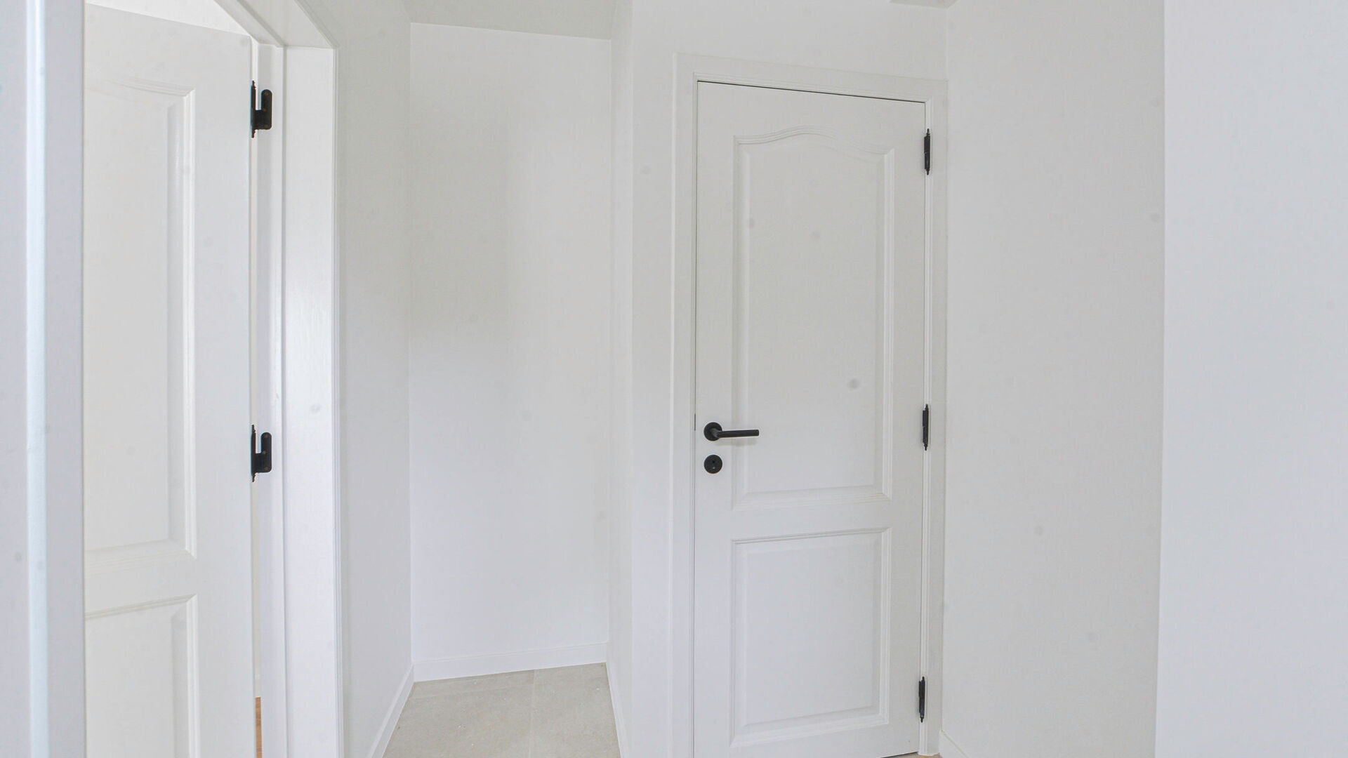 Inkomhal met vestiaire en apart toilet // woonkamer van +/- 25 m² met ingerichte keuken (inductiekookplaat, magnetron, oven, koelkast, vriezer, vaatwasser).