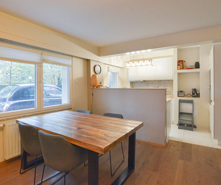 Dit mooie appartement +/-88m² (volgens EPC) bevindt zich op het gelijkvloers van een goed onderhouden mede-eigendom en is als volgt ingedeeld:
