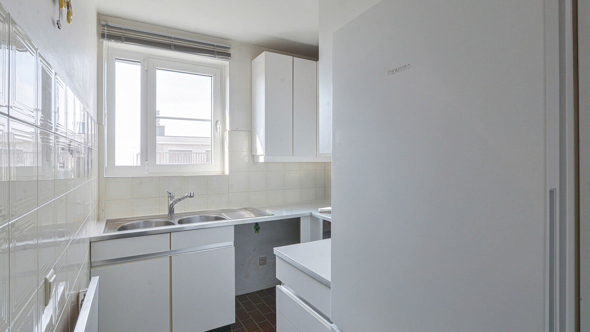 Inkomhal met vestiairehoek en apart toilet, een ingerichte keuken (oven, kookplaat) en een lichtrijke leef- en eetruimte van ± 18m² toegang gevend tot een aangenaam west georiënteerd terras, ideaal om van de avondzon te genieten. Het slaapgedeelte omvat een slaapkamer van ± 11 m² met aangrenzende badkamer, uitgerust met bad/douchecombinatie, wastafel en aansluiting voor een wasmachine.