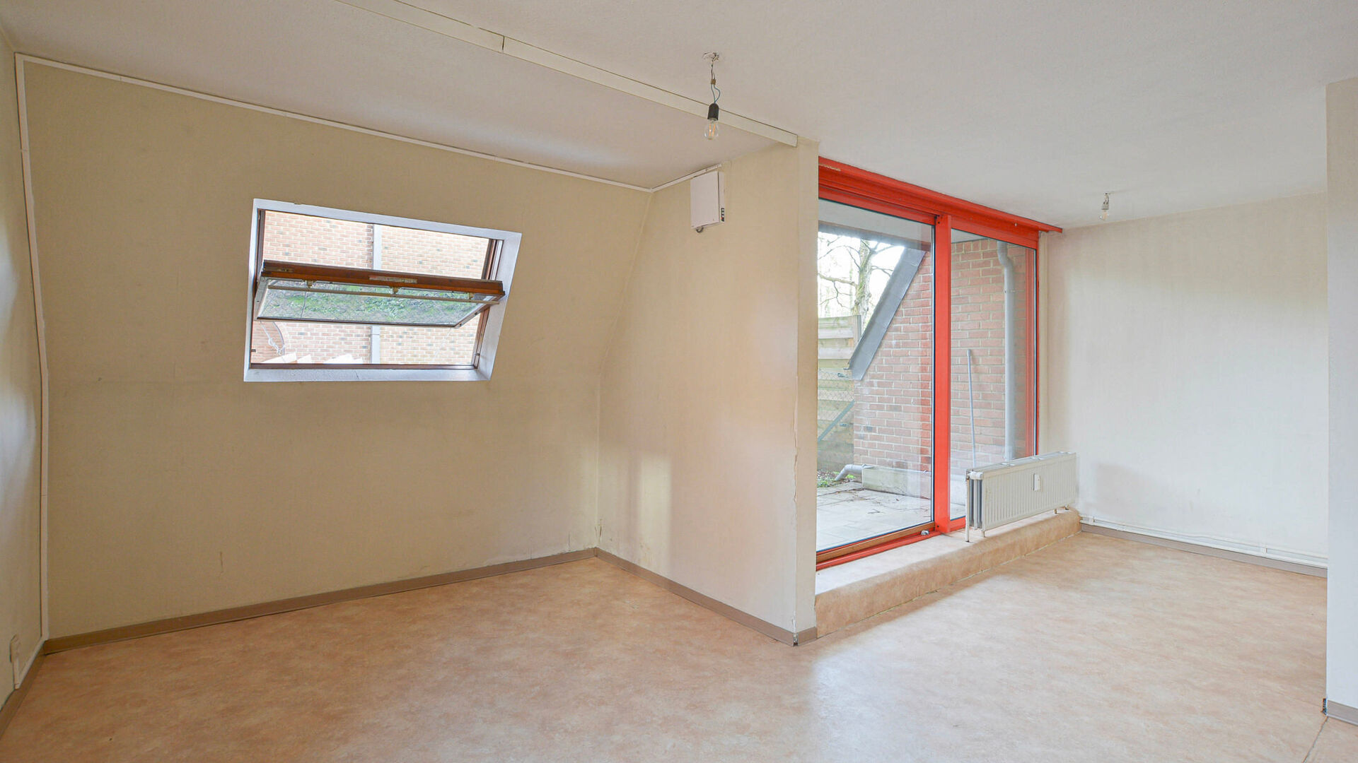 Deze volledig te renoveren studio van +/- 50 m² (volgens het EPC) is als volgt ingedeeld: