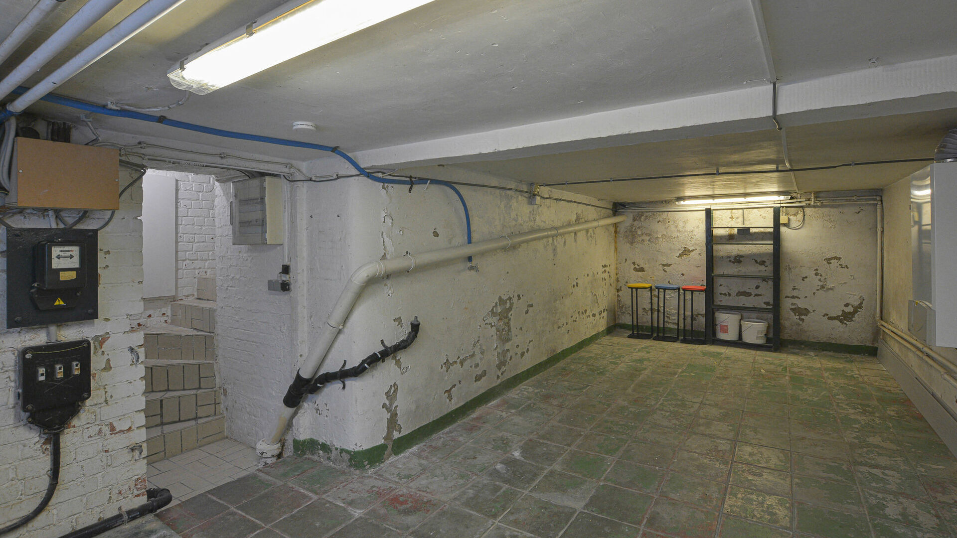 Onderverdiep: Garage voor 1 wagen + parkeerplaats op oprit, tellers en opbergruimte.