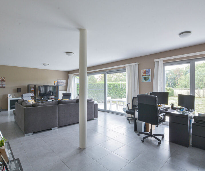 Dit kwalitatief afgewerkte appartement van +/-200 m² bevindt zich de op eerste verdieping van een verzorgd gebouw en combineert hoogstaande afwerking, comfort en rust. Het is als volgt ingedeeld: Inkomhal met vestiaire en apart toilet Ruime en lichtrijke woon- en eetkamer van +/- 65 m², met toegang tot een zuid gerichte tuin en terras met uitzicht op de omliggende velden Volledig uitgeruste keuken met ontbijthoek en aangrenzende berging Master bedroom +/-16 m² met dressingruimte en ensuite badkamer (ligbad, douche, wastafel en toilet) Twee bijkomende slaapkamers +/-12 m² en 10 m². Tweede badkamer met douche wastafel en toilet Daarnaast beschikt het appartement over een garage voor twee wagens en een extra parkeerplaats op de oprit.